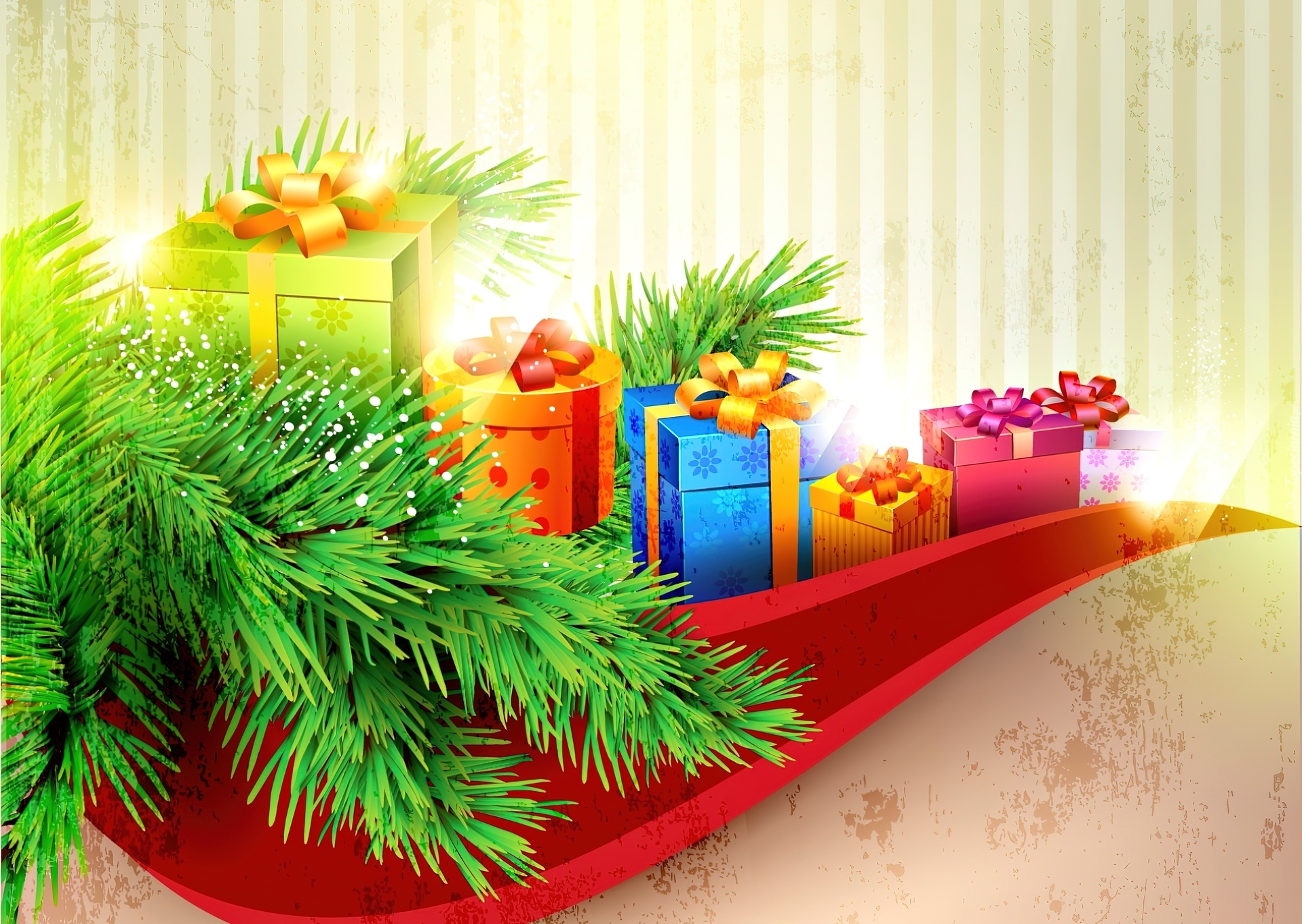 Edytor tapety: Boże Narodzenie, Kolorowe, Prezenty, Grafika