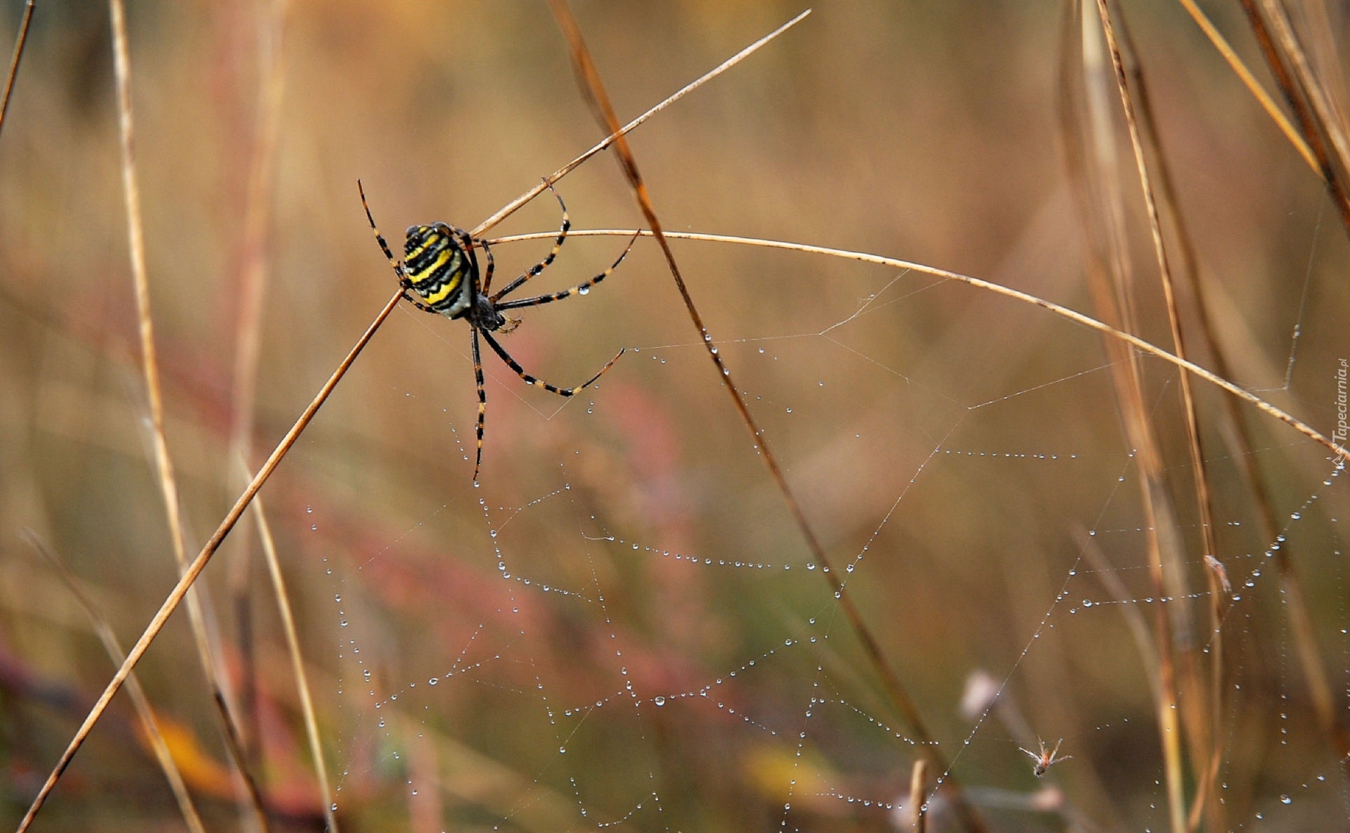 Edytor tapety: Pająk, Tygrzyk, Gałązki, Rosa