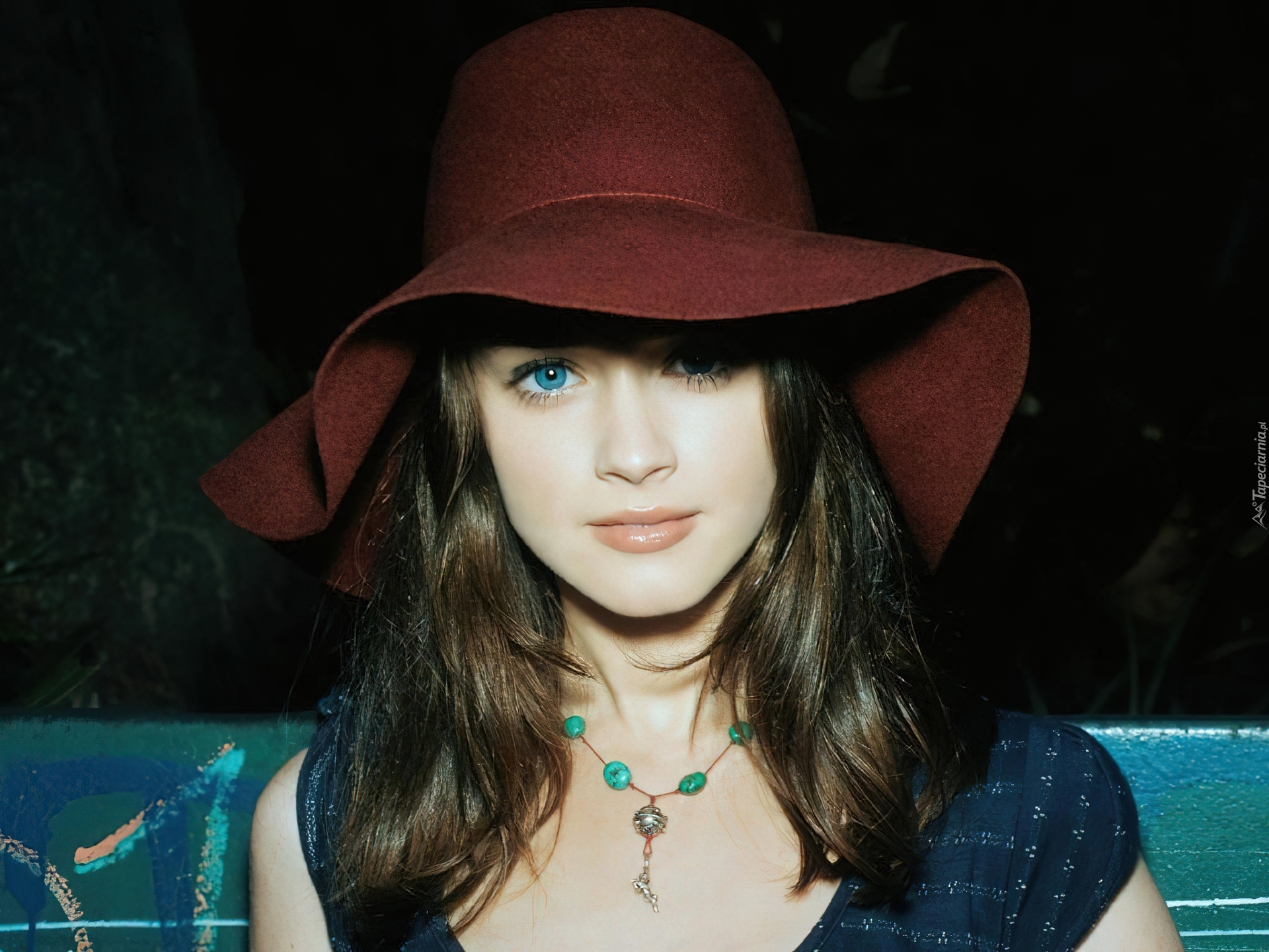 Edytor tapety: Alexis Bledel, Bordowy, Kapelusz