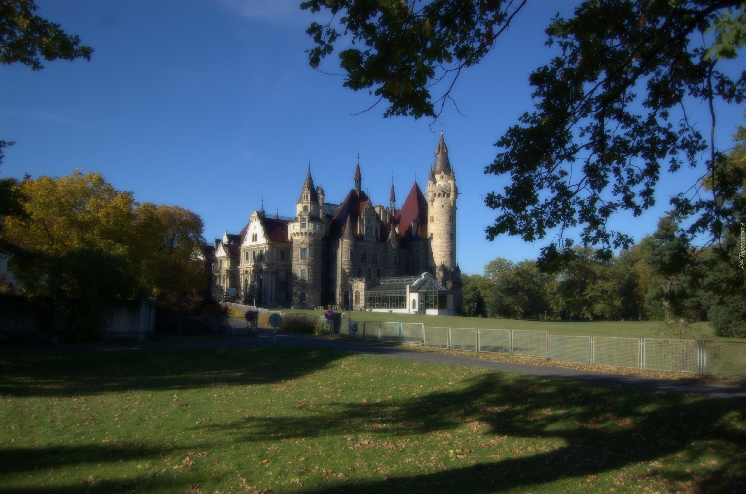 Edytor tapety: Zamek, Moszna, Wieże, Drzewa, Cienie