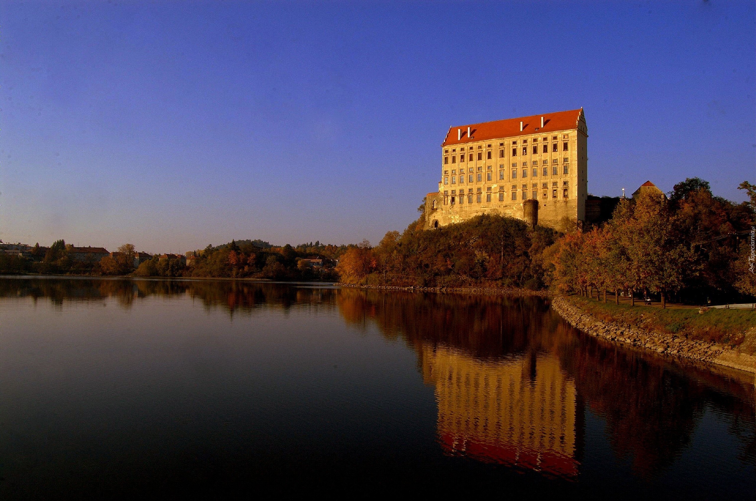 Edytor tapety: Zamek, Plumlov, Woda, Odbicie, Drzewa