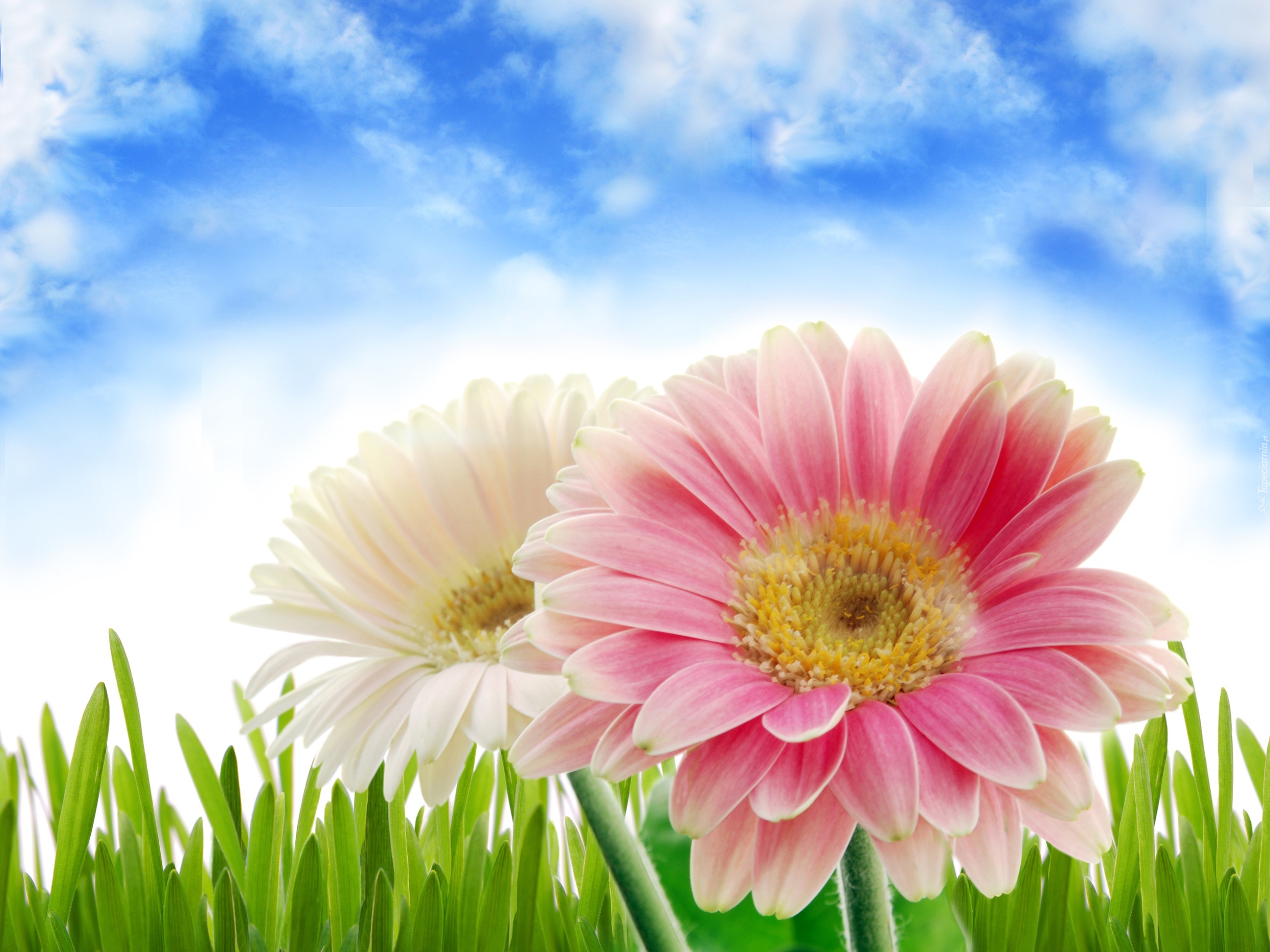 Edytor tapety: Dwa, Gerbery, Niebo, Trawa