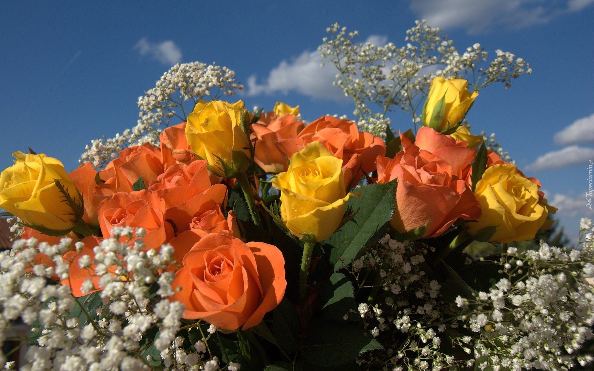Edytor tapety: Kwiaty, Bukiet, Róże, Gipsówka