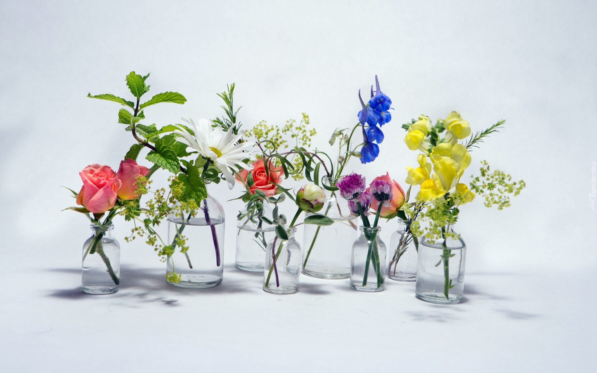 Edytor tapety: Kolorowe, Kwiaty, Białe, Tło