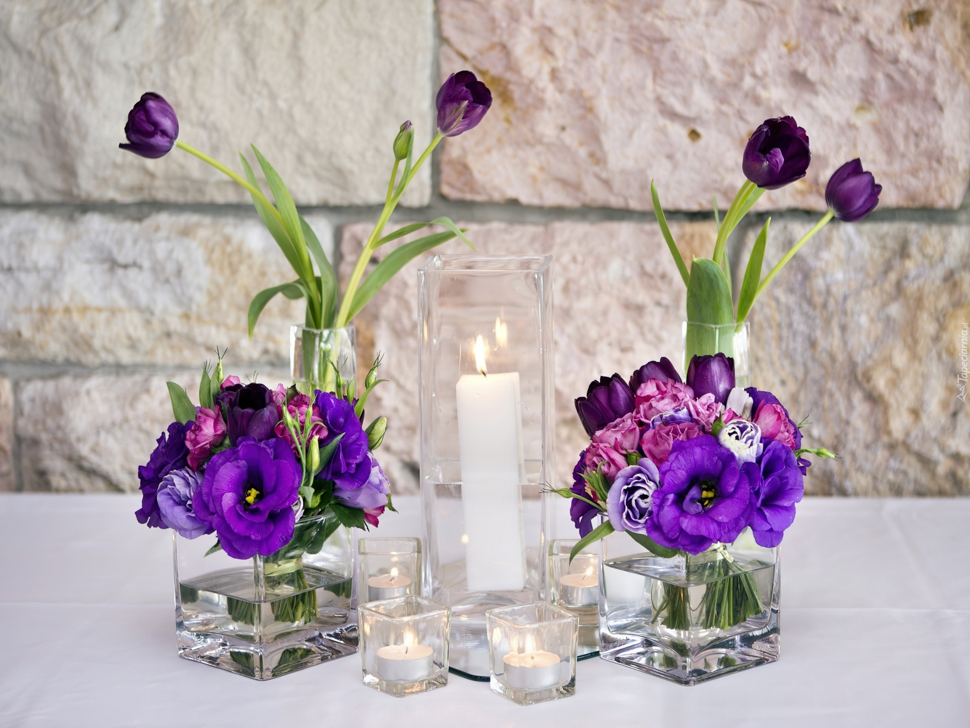 Edytor tapety: Dekoracja, Fioletowe, Kwiaty, Białe, Świece