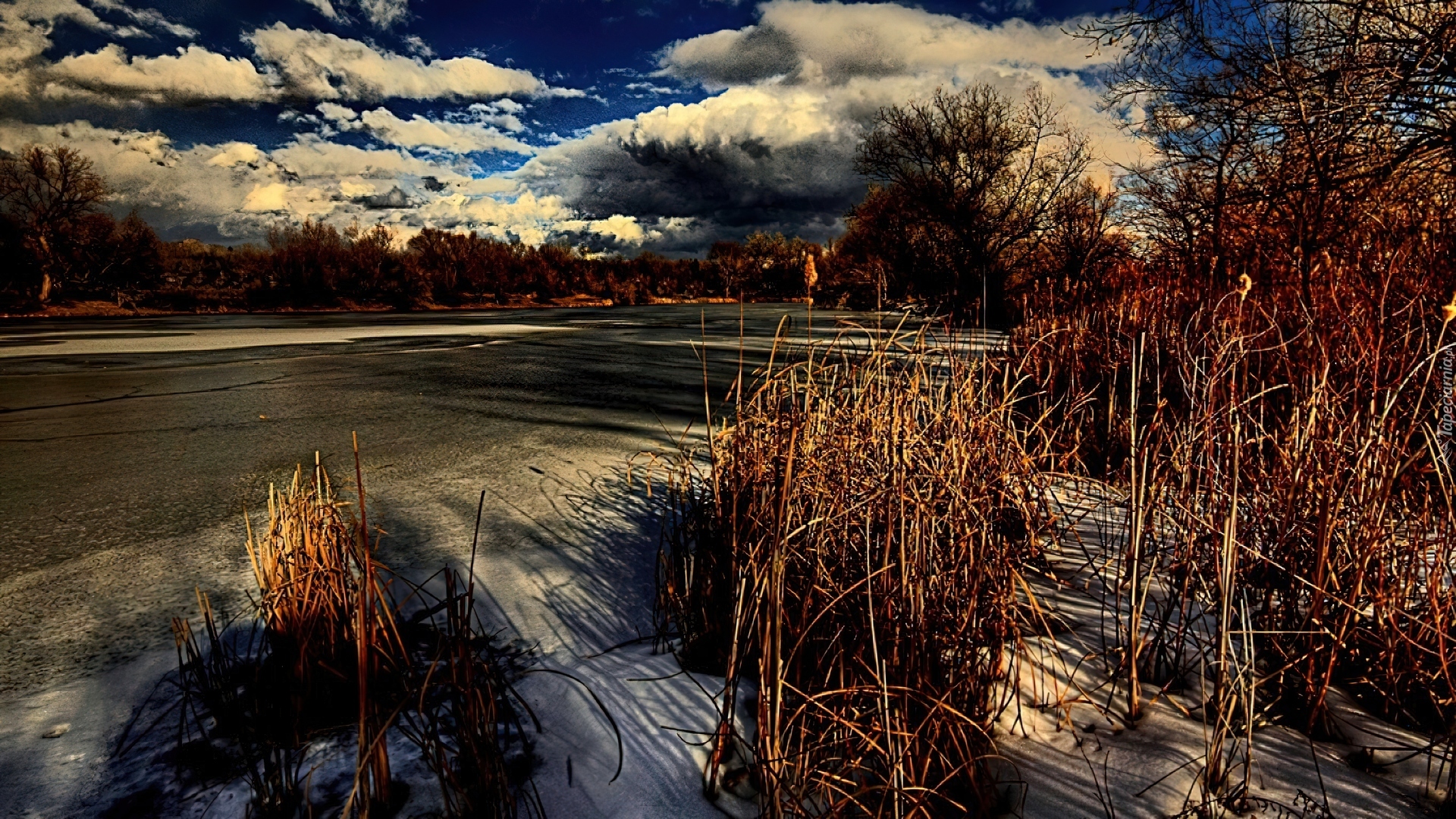 Edytor tapety: Krajobrazy, Zima, Śnieg, Chmury, Jezioro