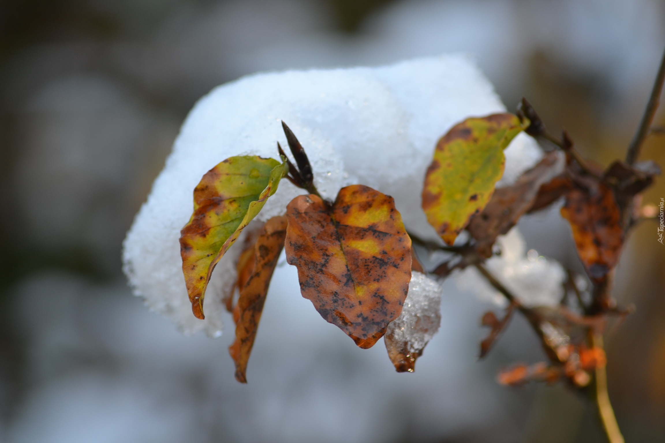 Edytor tapety: Śniegowa, Czapa, Na, Liściach, Buka