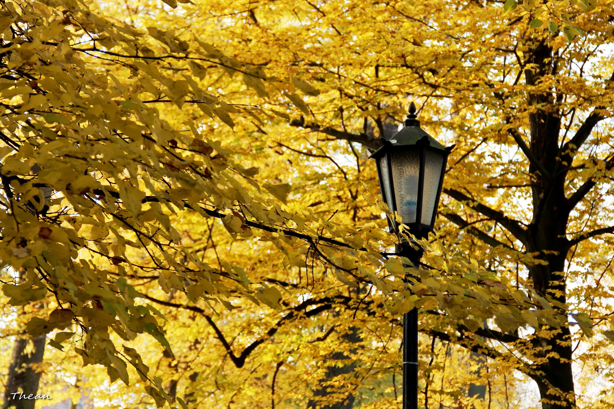 Edytor tapety: Żółte, Jesienne, Liście, Latarnia