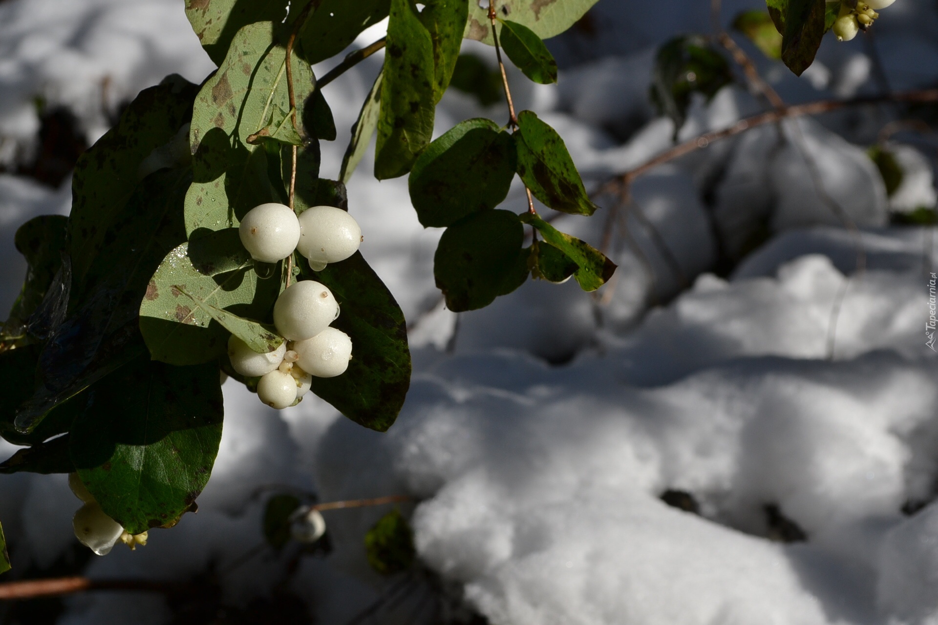 Edytor tapety: Gałązka, Śnieguliczki, Owocniki, Krople, Wody, Śnieg
