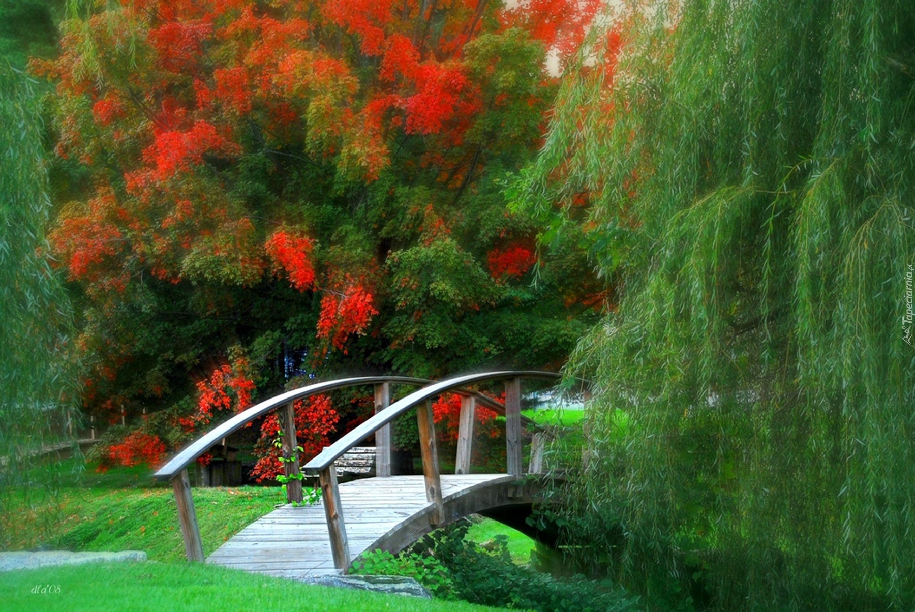 Edytor tapety: Park, Wierzba, Mostek, Grafika