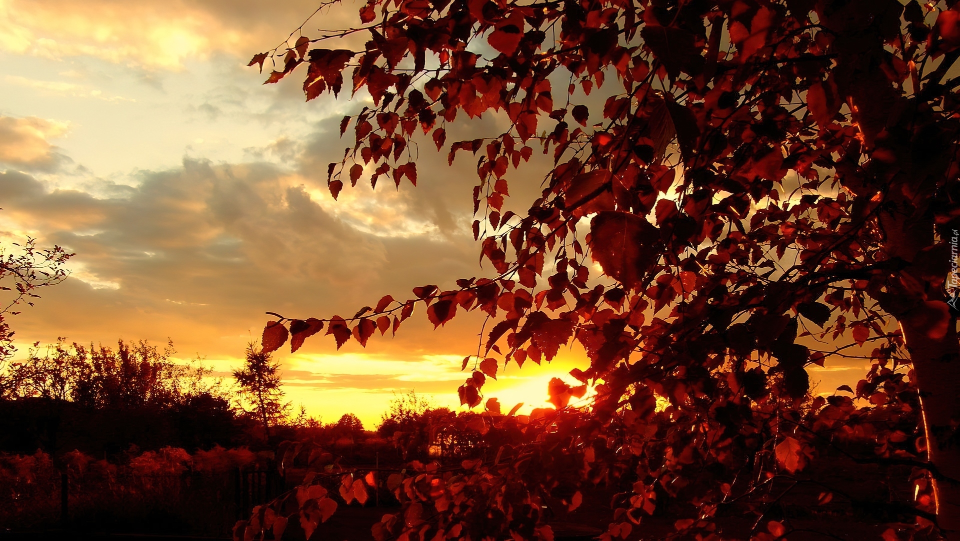 Edytor tapety: Zachód, Słońca, Jesień, Drzewa