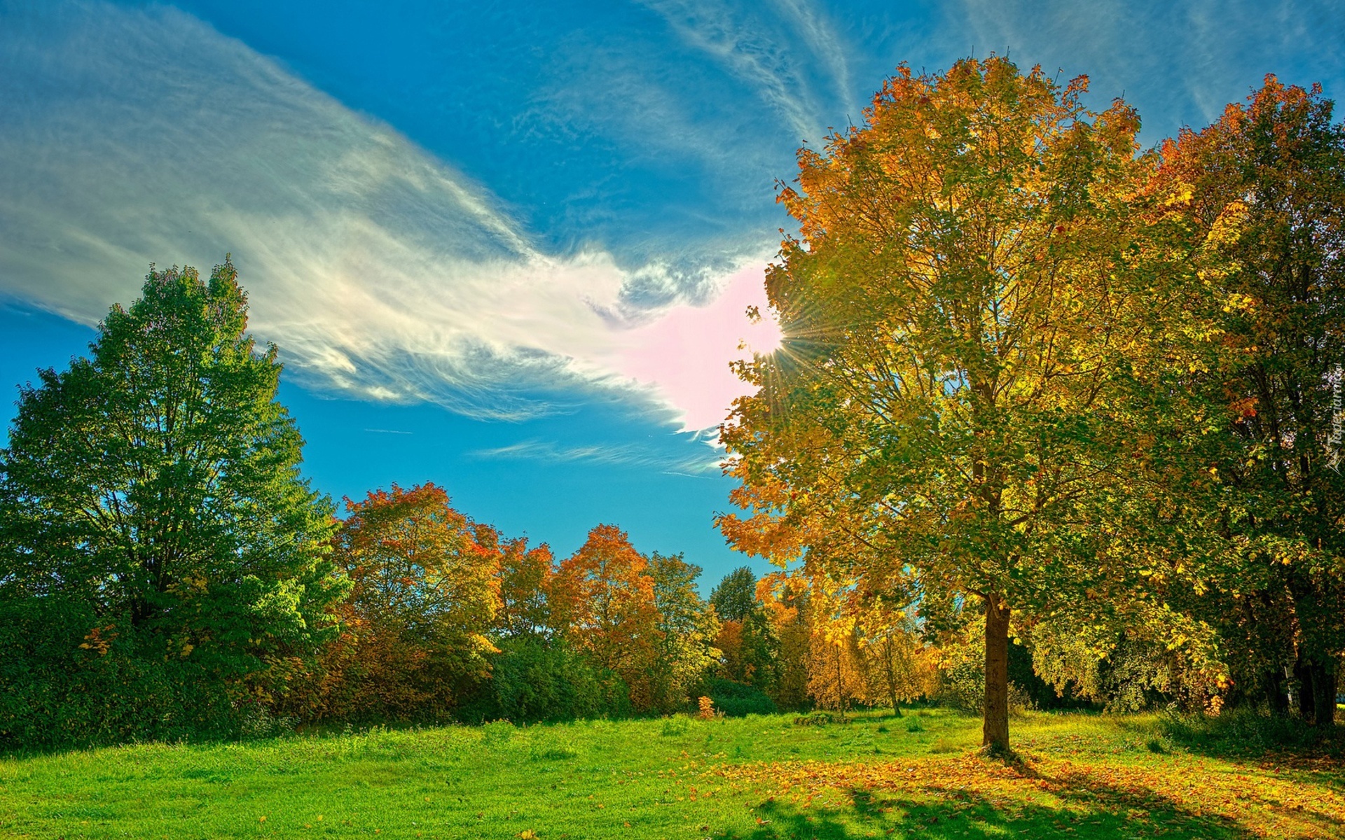 Edytor tapety: Łąka, Kolorowe, Drzewa, Jesień