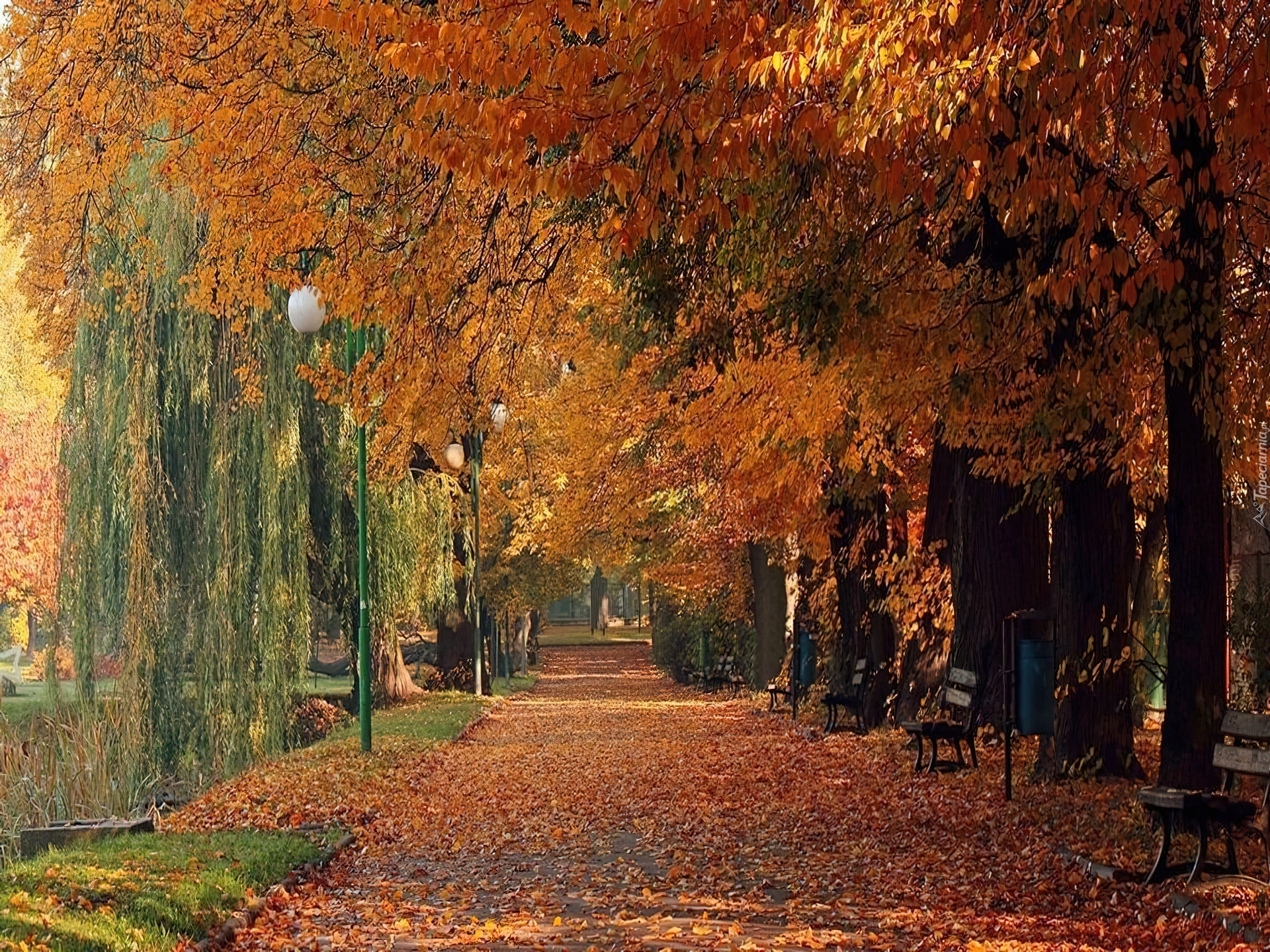 Edytor tapety: Jesień, Park, Aleja, Ławki