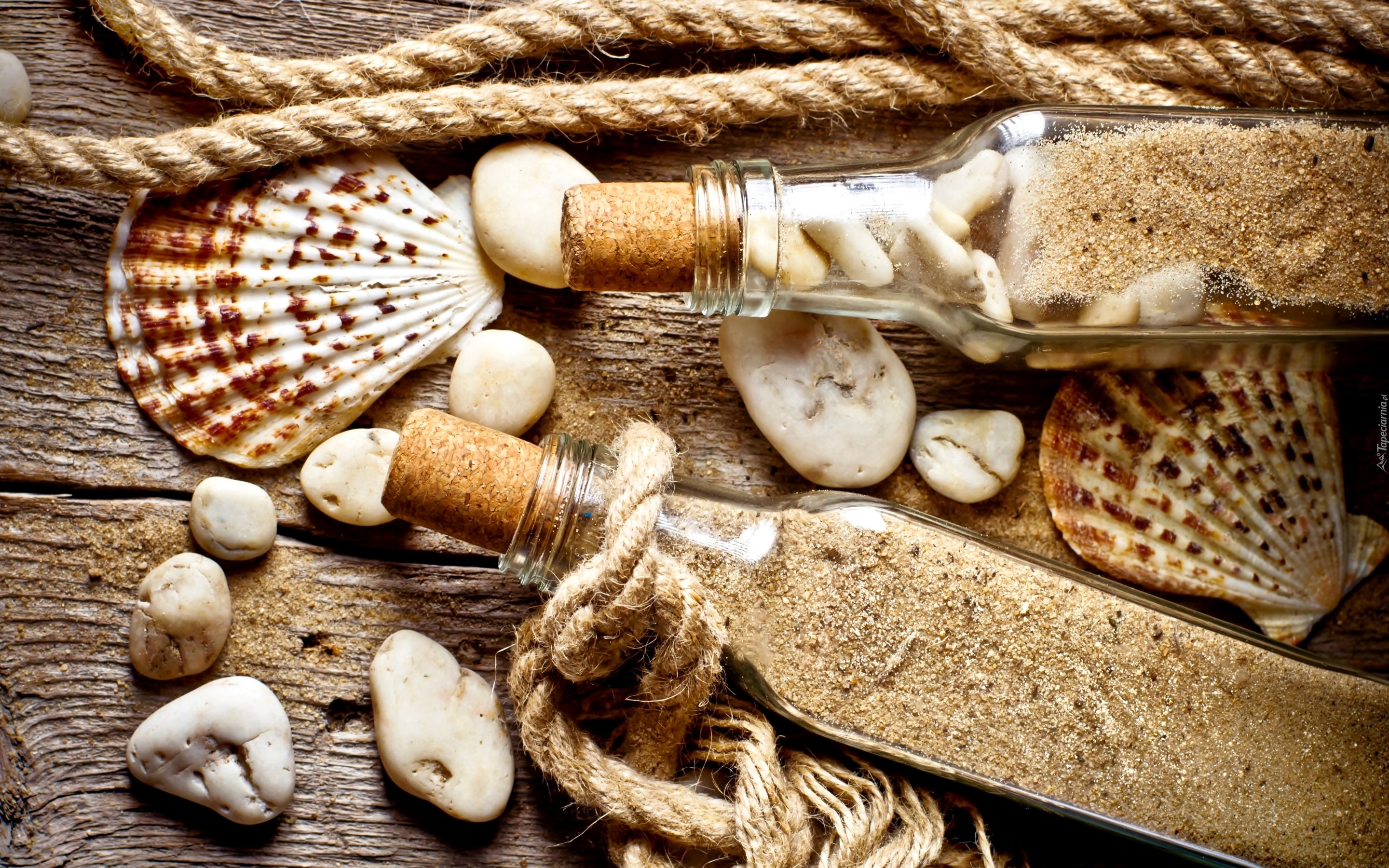 Edytor tapety: Dekoracja, Butelki, Muszelki, Kamyki