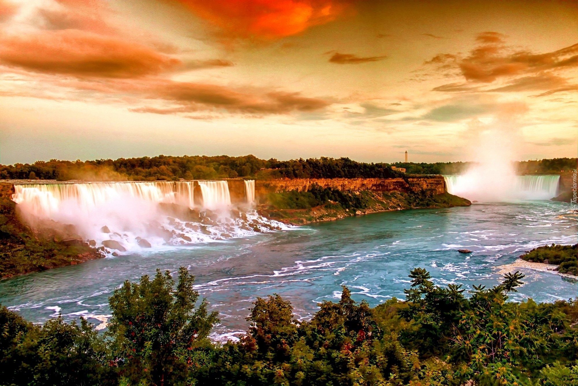Edytor tapety: Wodospad, Zachód, Słońca