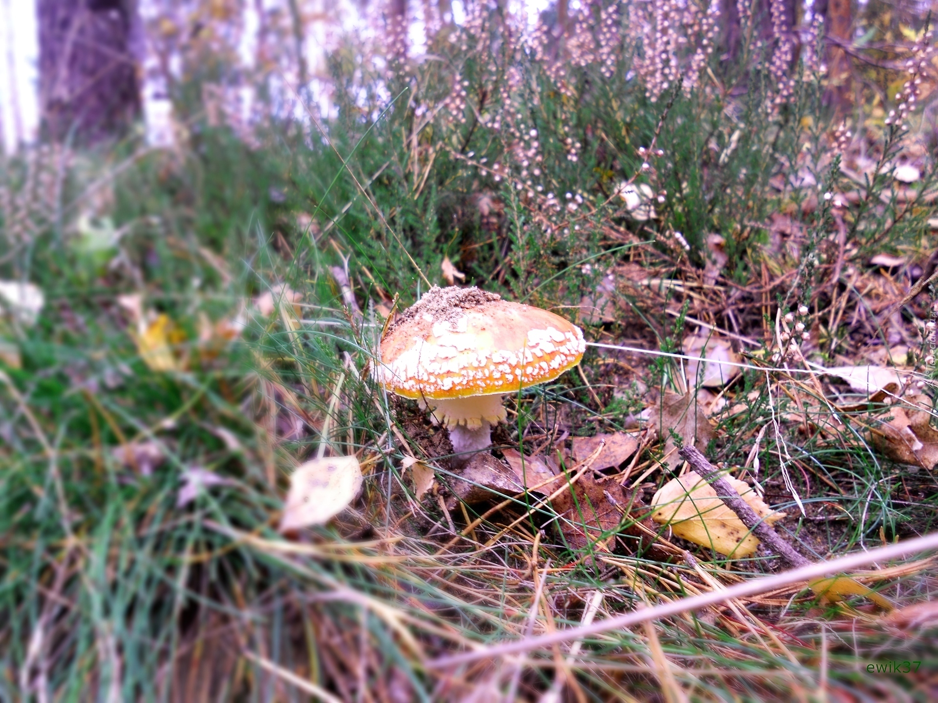 Edytor tapety: Las, Grzyb, Muchomor, Wrzosy
