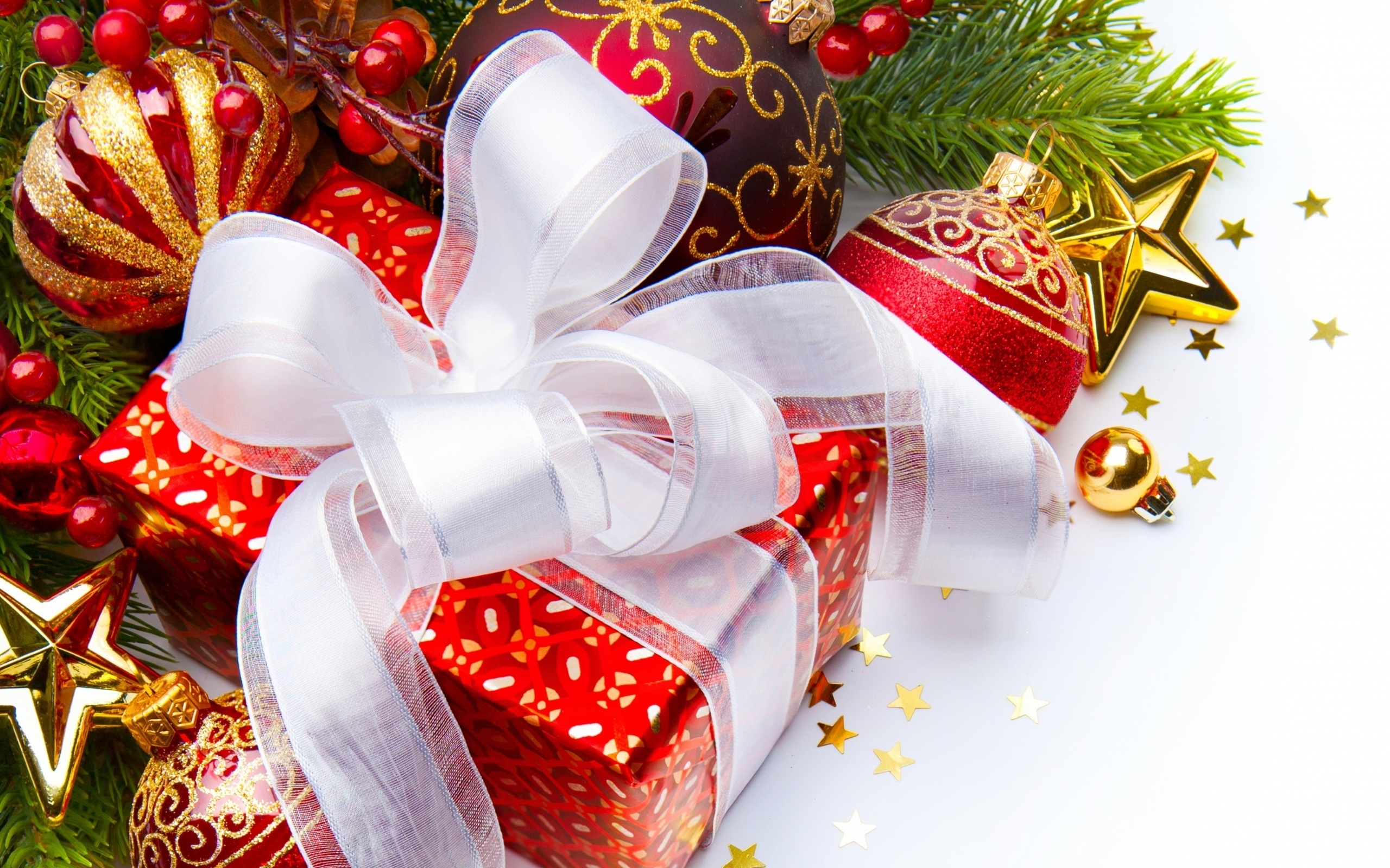 Edytor tapety: Bombki, Świerk, Prezent