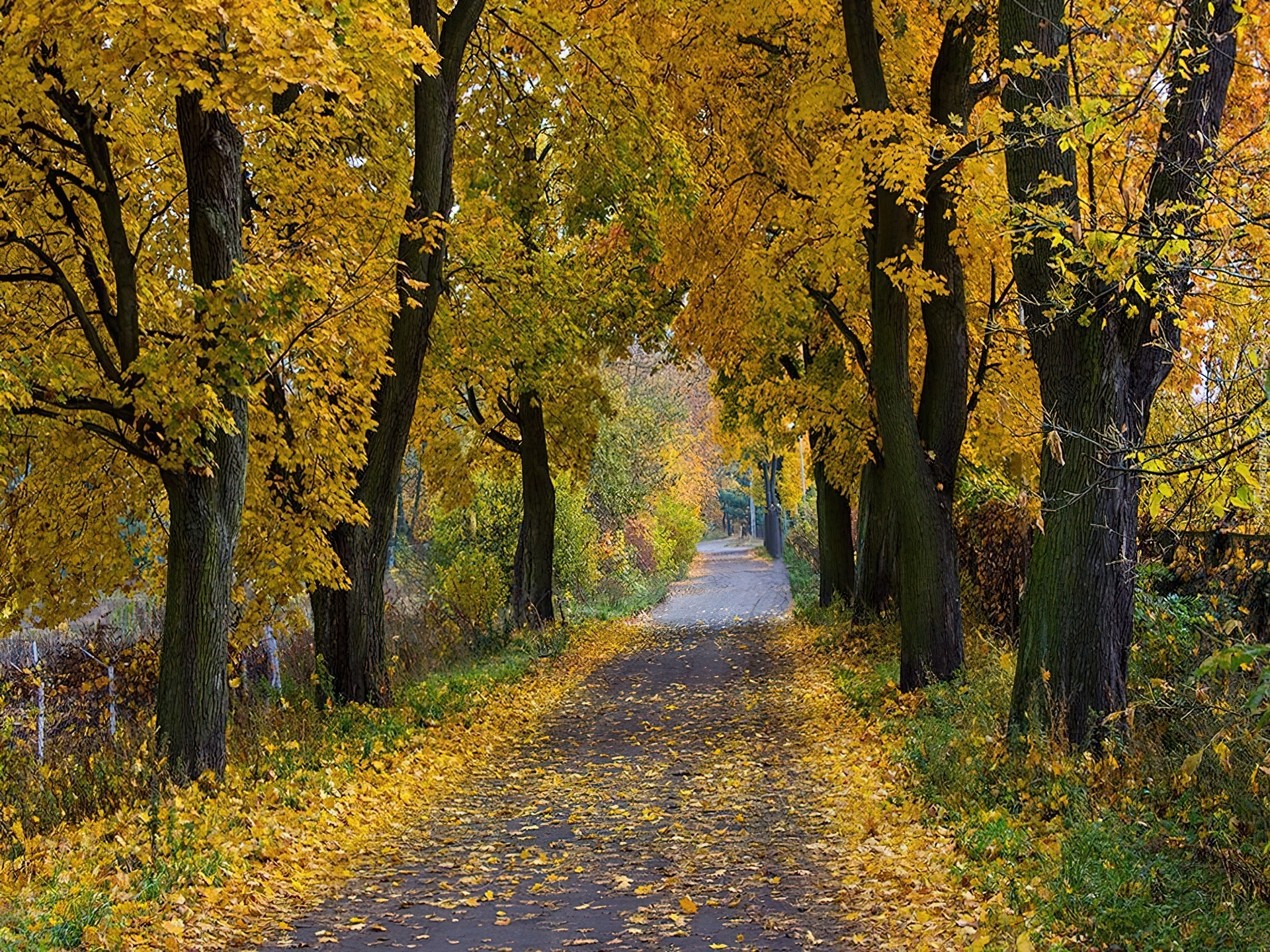 Edytor tapety: Jesień, Droga, Drzewa, Liście