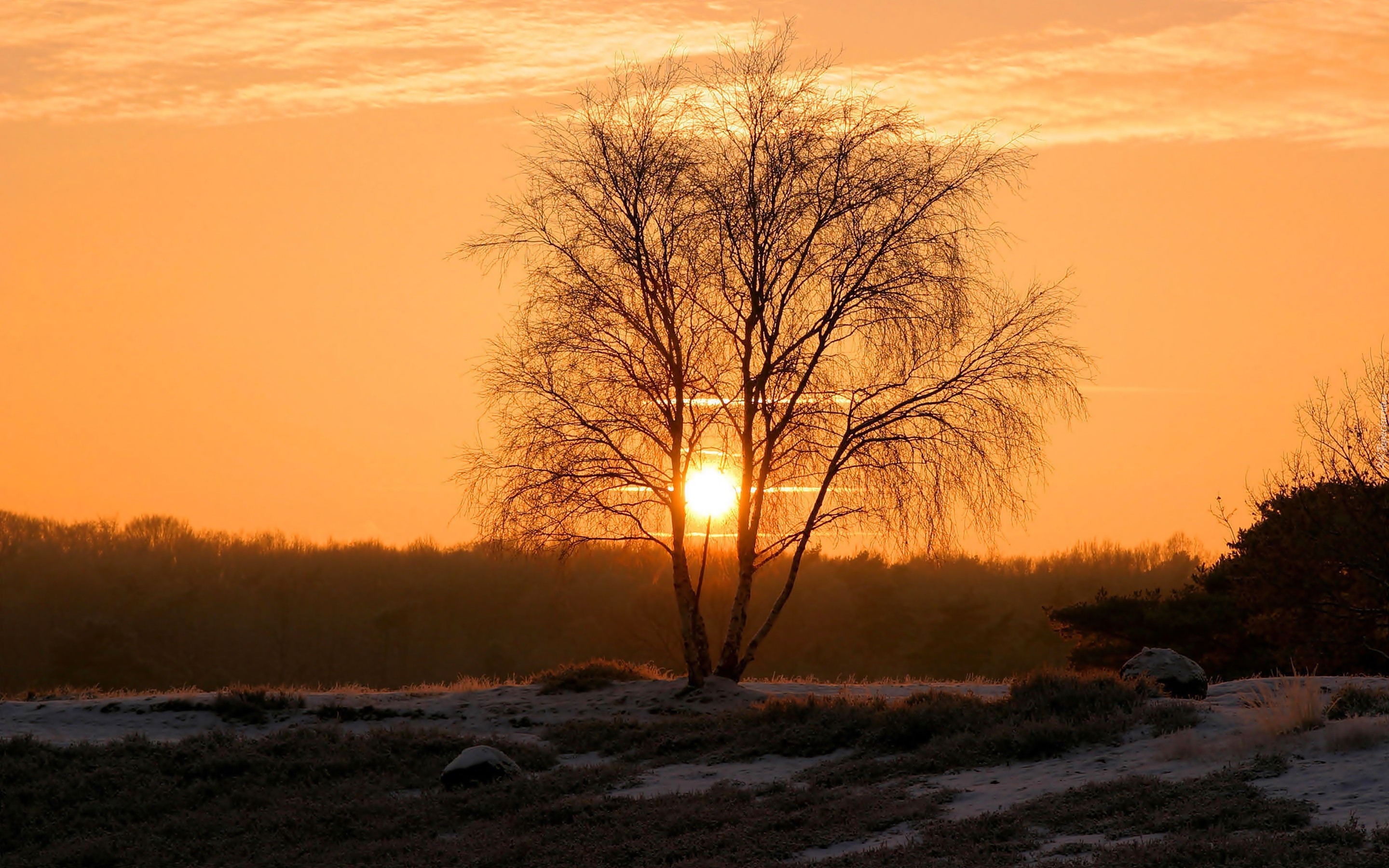 Edytor tapety: Drzewo, Zachód, Słońca, Śnieg