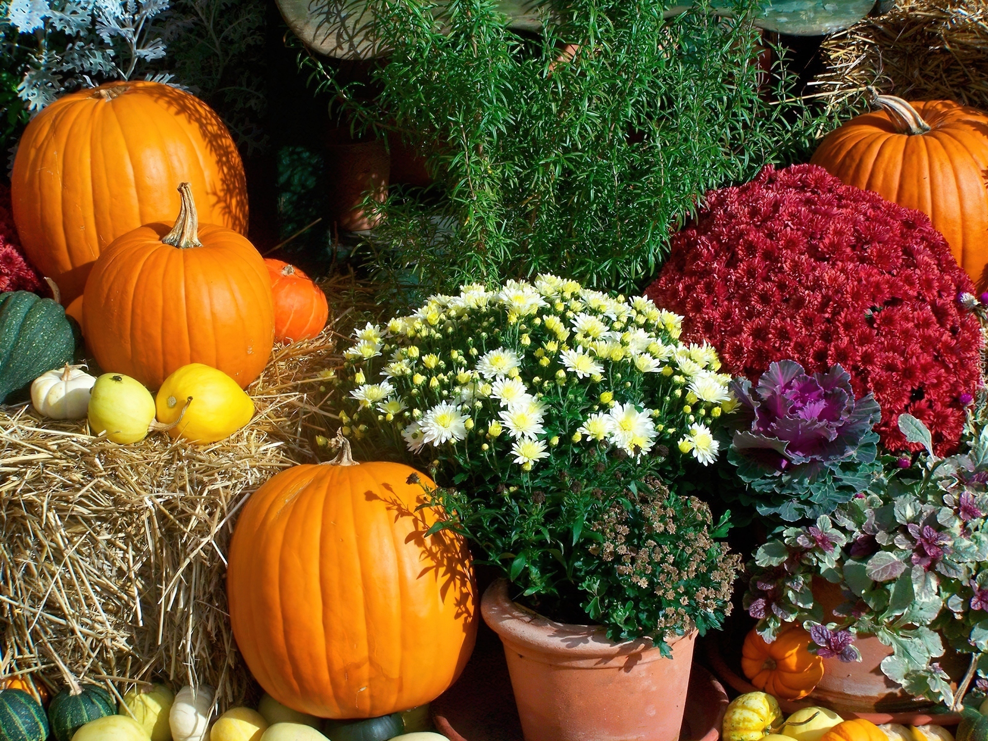 Edytor tapety: Jesienne, Kwiaty, Chryzantemy, Dynie