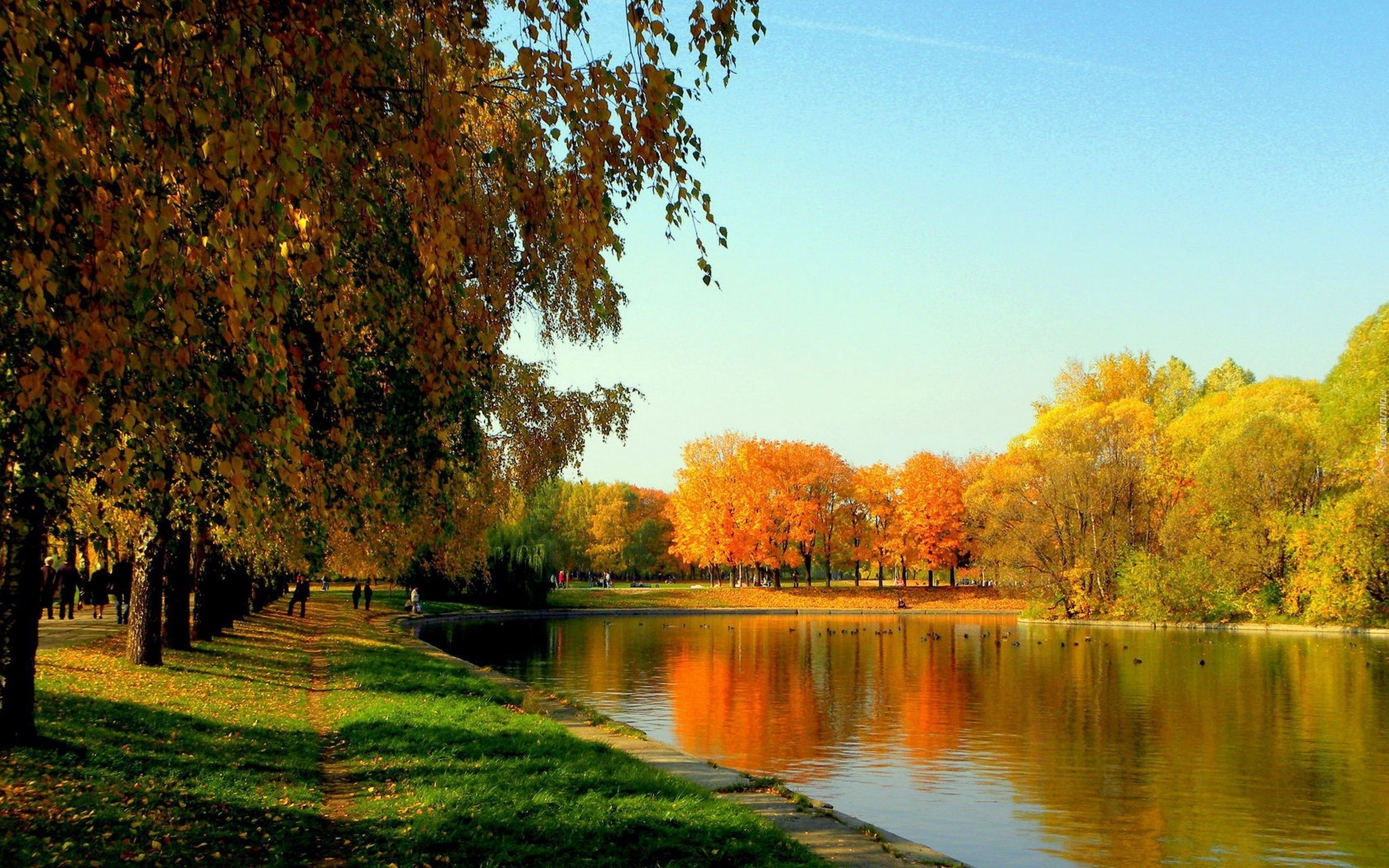 Edytor tapety: Park, Rzeka, Kolorowe, Drzewa, Jesień