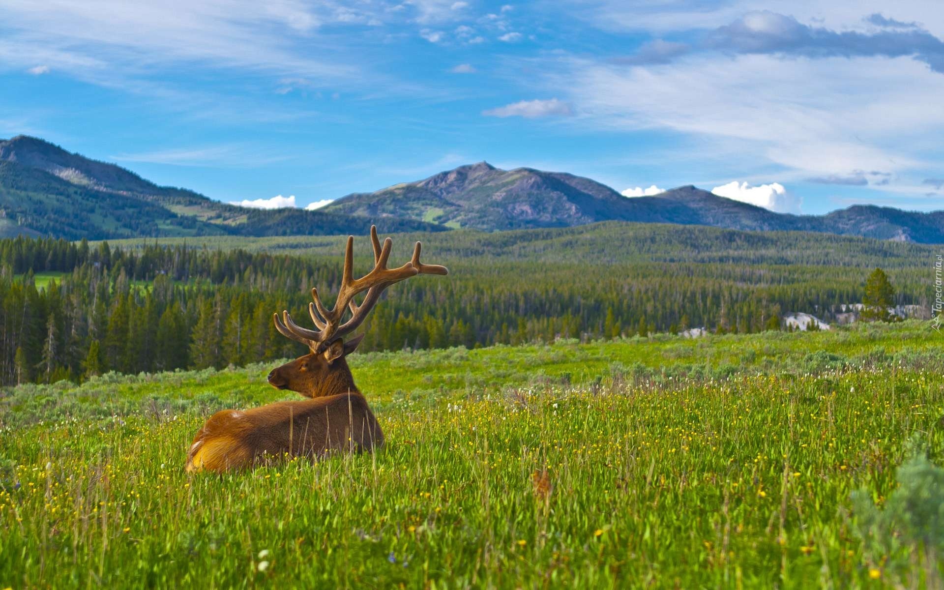 Edytor tapety: Jeleń, Łąka, Góry, Jesień