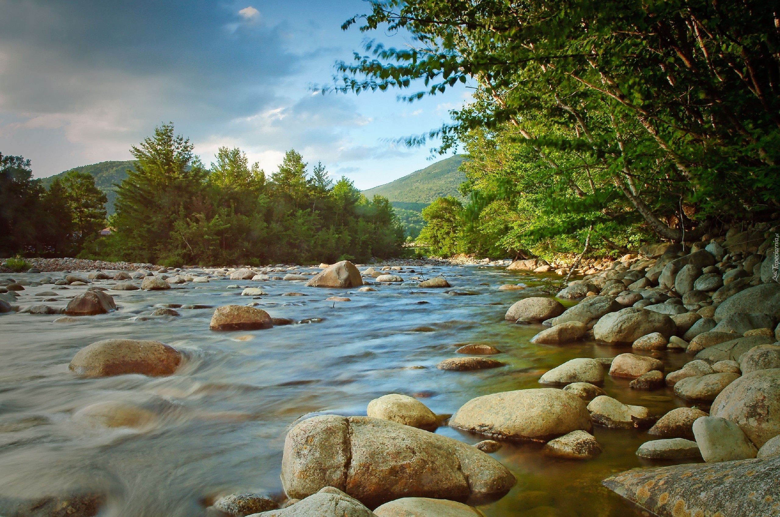 Edytor tapety: Jezioro, Kamienie, Las