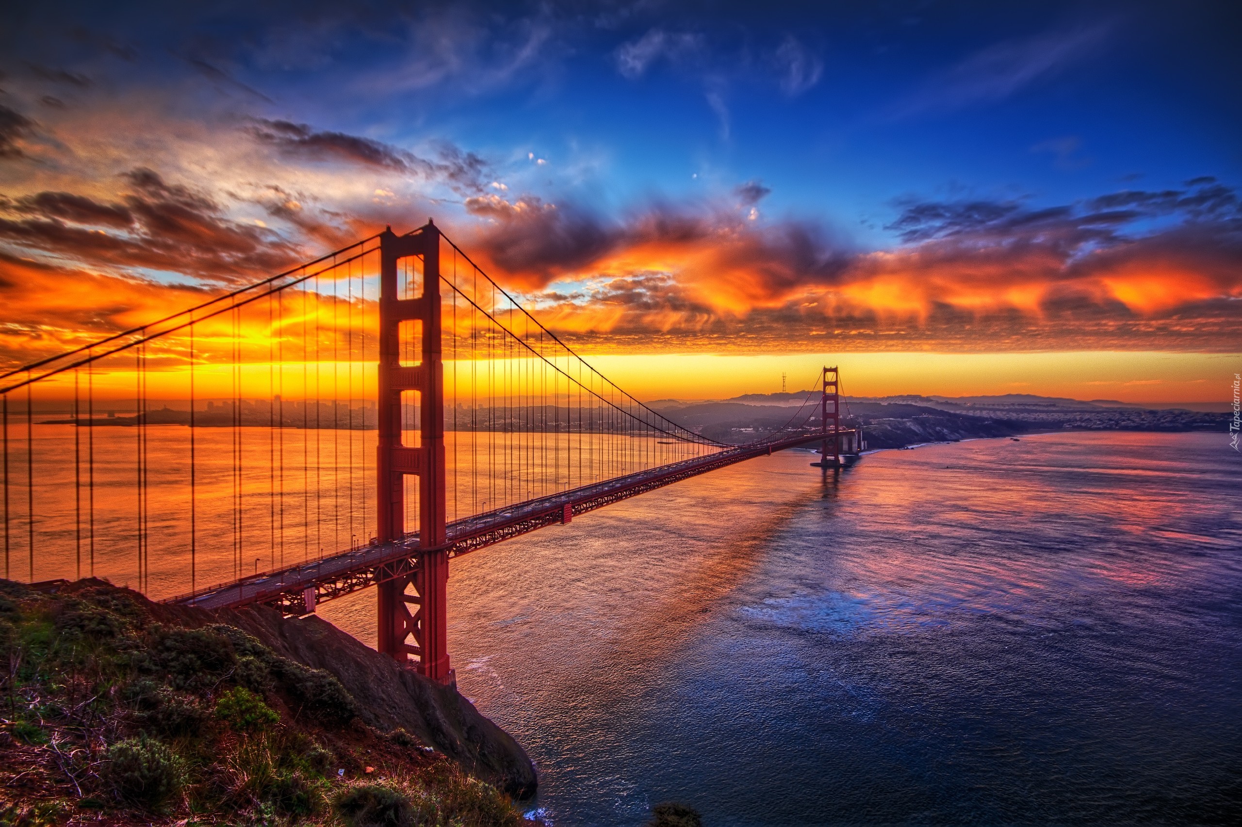 Edytor tapety: Zachód Słońca, Most, Golden Gate