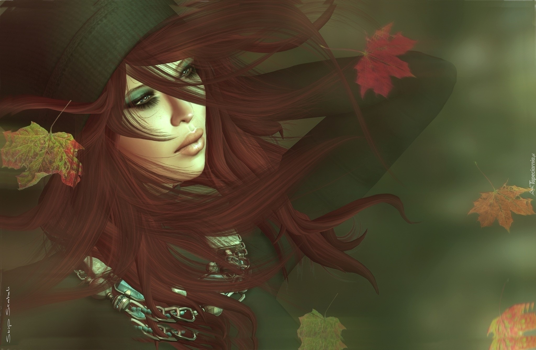 Edytor tapety: Dziewczyna, Brunetka, Jesienne, Liście