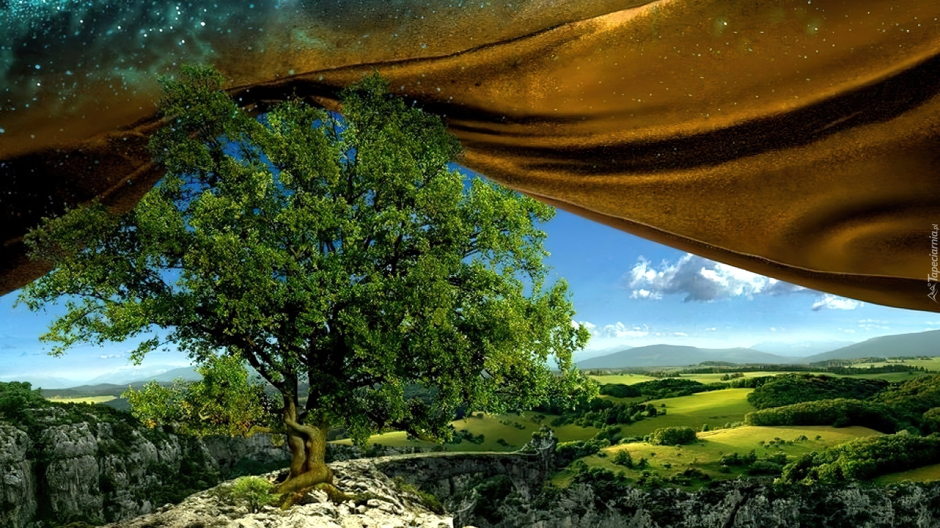 Edytor tapety: Skały, Drzewo, Pagórki
