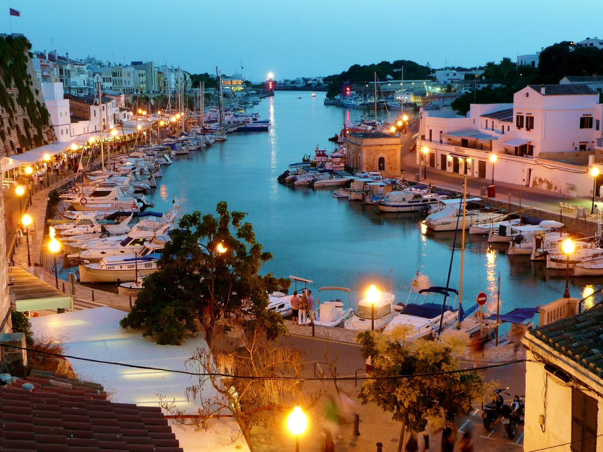 Edytor tapety: Miasto, Ciutadella, Hiszpania, Jachty