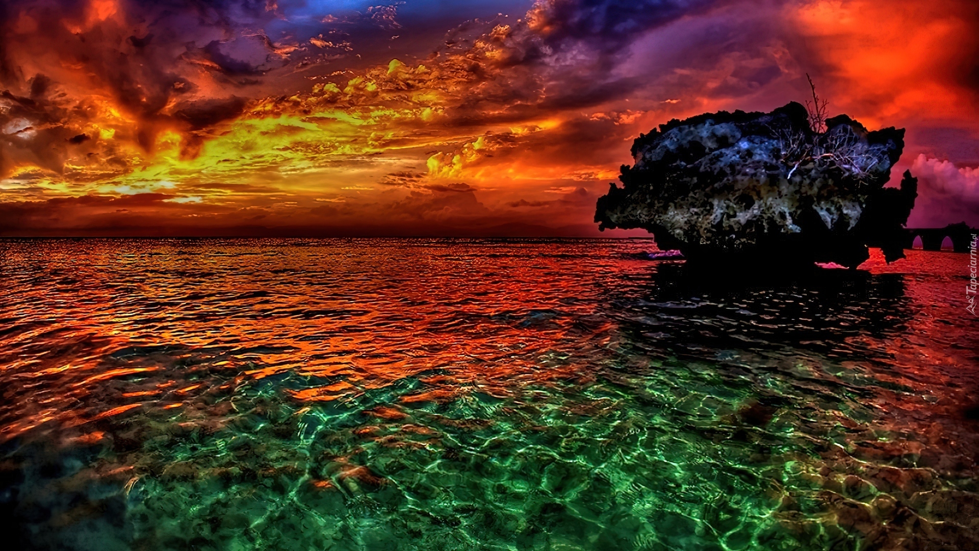 Edytor tapety: Morze, Skała, Kolorowe, Zachmurzone, Niebo