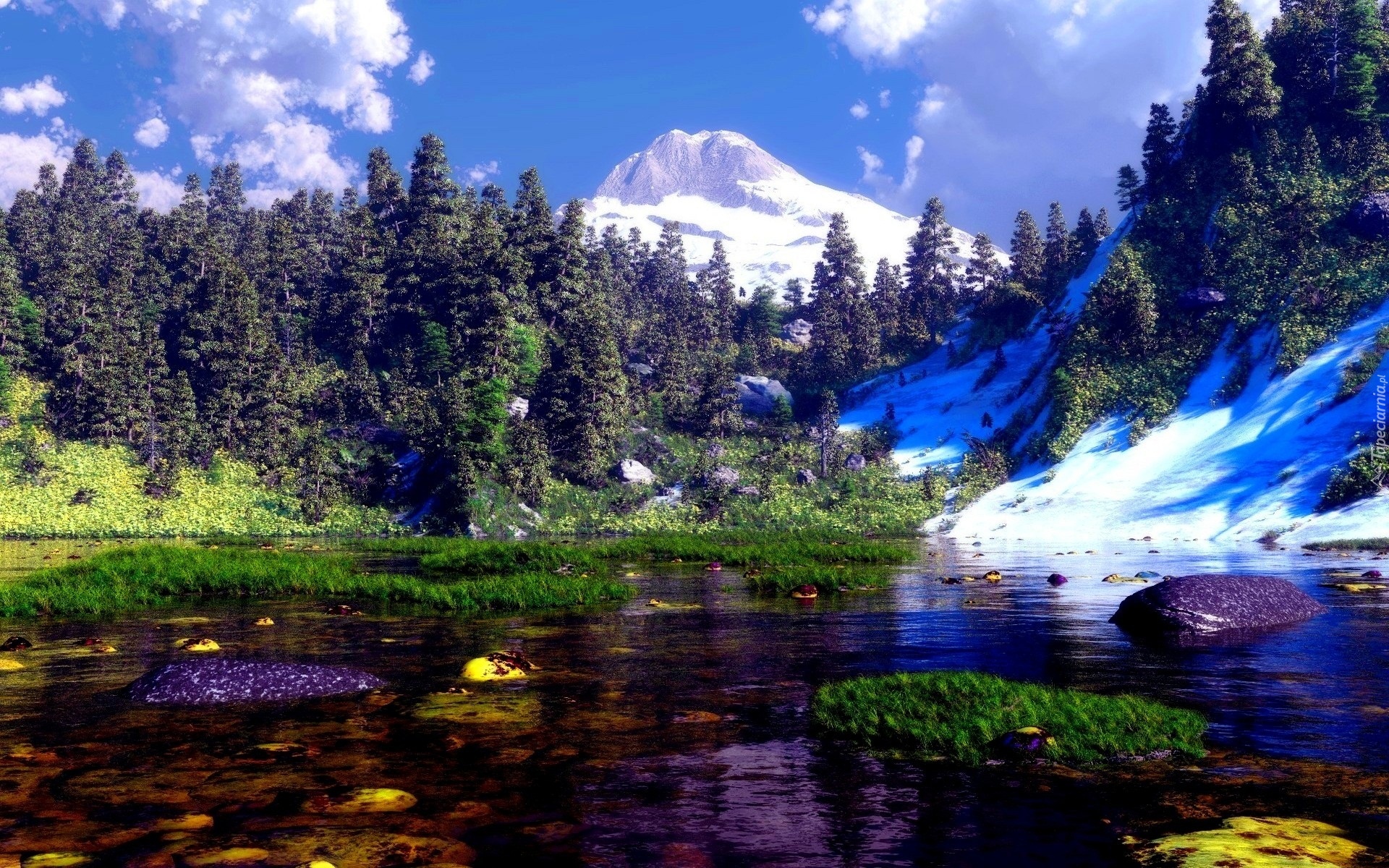 Edytor tapety: Jezioro, Góry, Las, Błękitne, Niebo