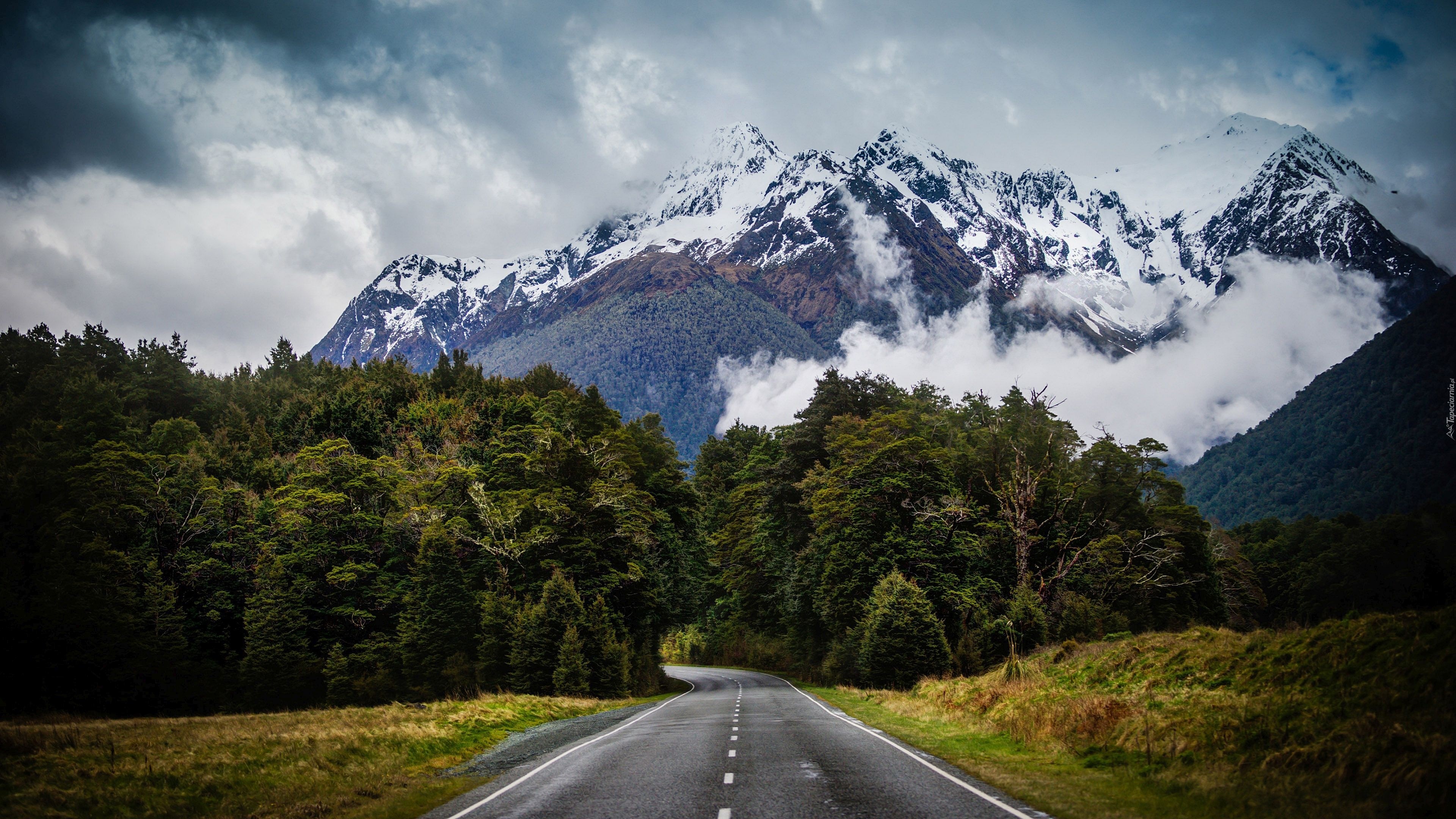 Edytor tapety: Niebo, Szczyty, Gór, Las, Droga