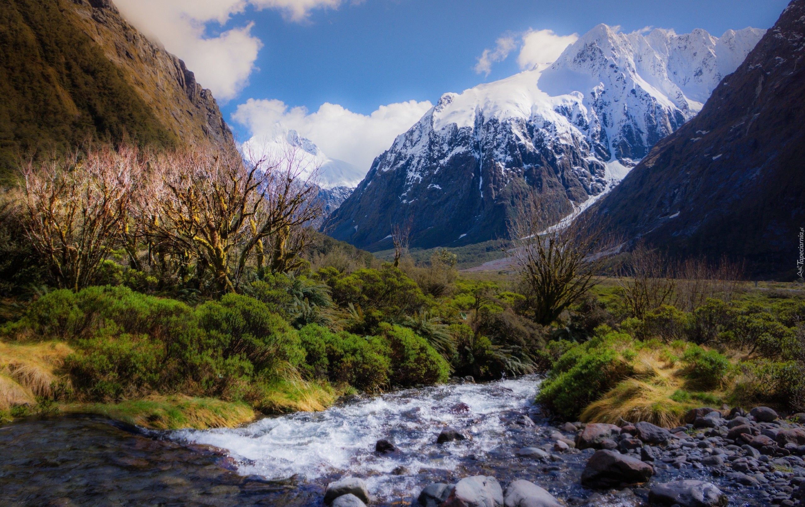 Edytor tapety: Góry, Rzeczka, Drzewa