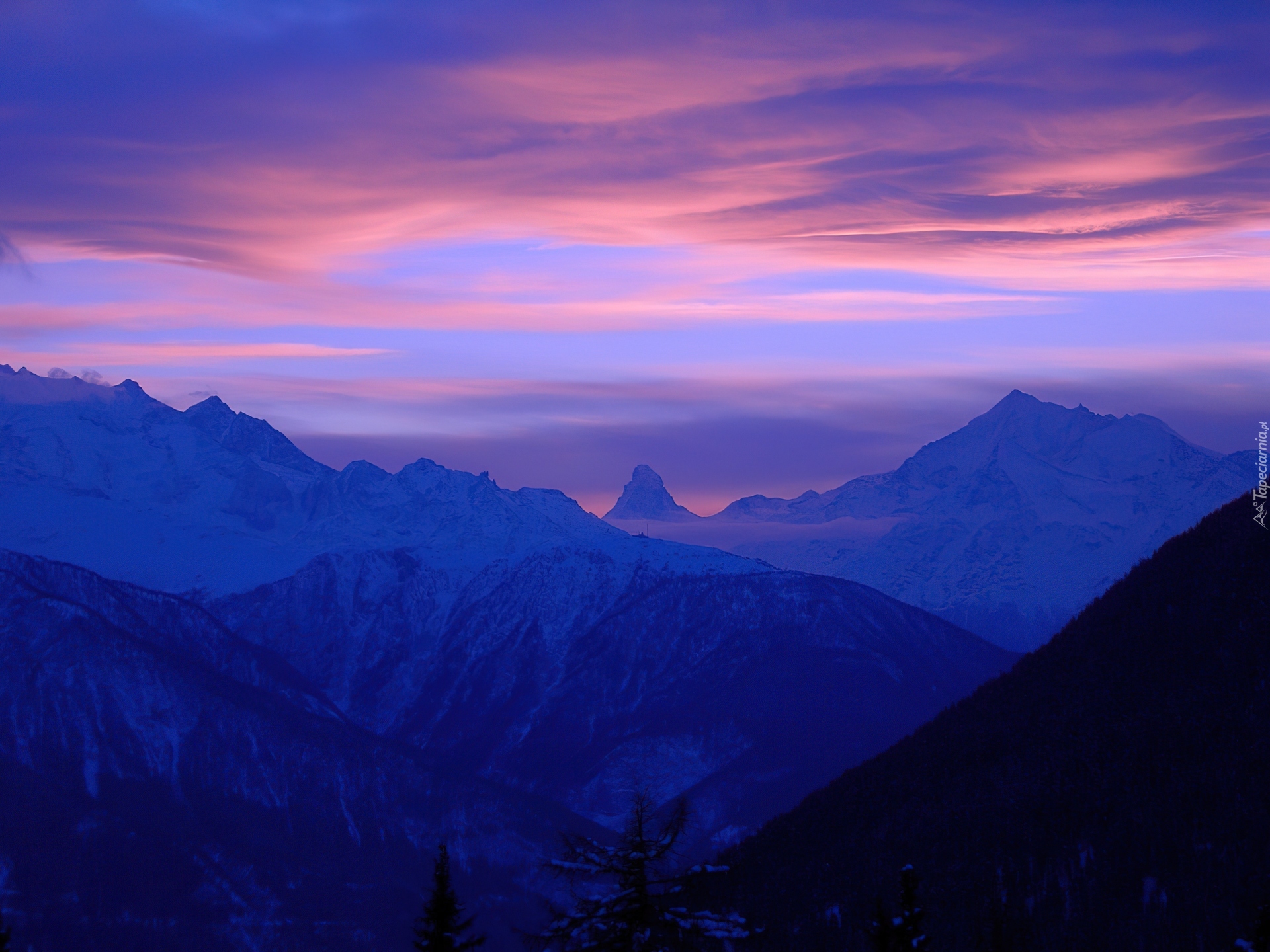 Edytor tapety: Zachód Słońca, Góry, Chmury, Zmrok