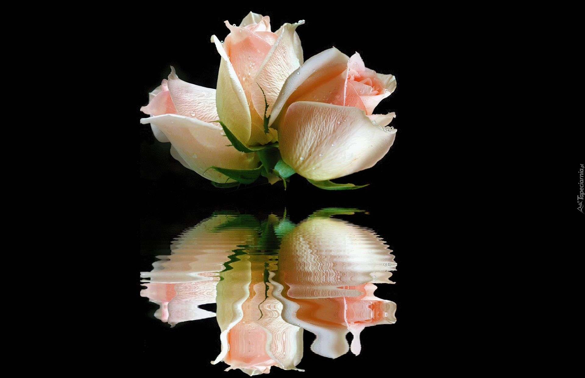 Edytor tapety: Trzy, Róże, Woda, Odbicie