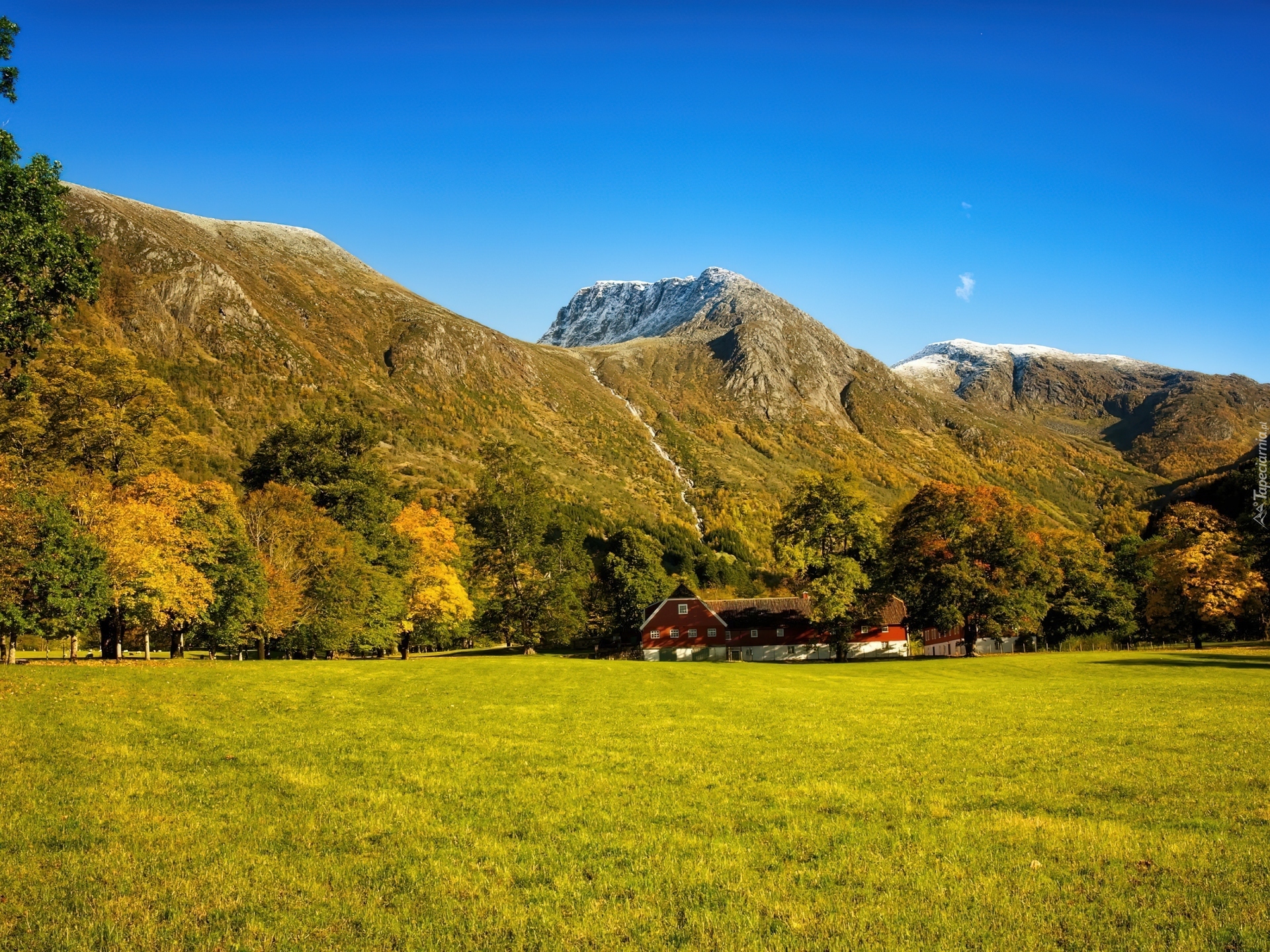 Edytor tapety: Góry, Dom, Łąka