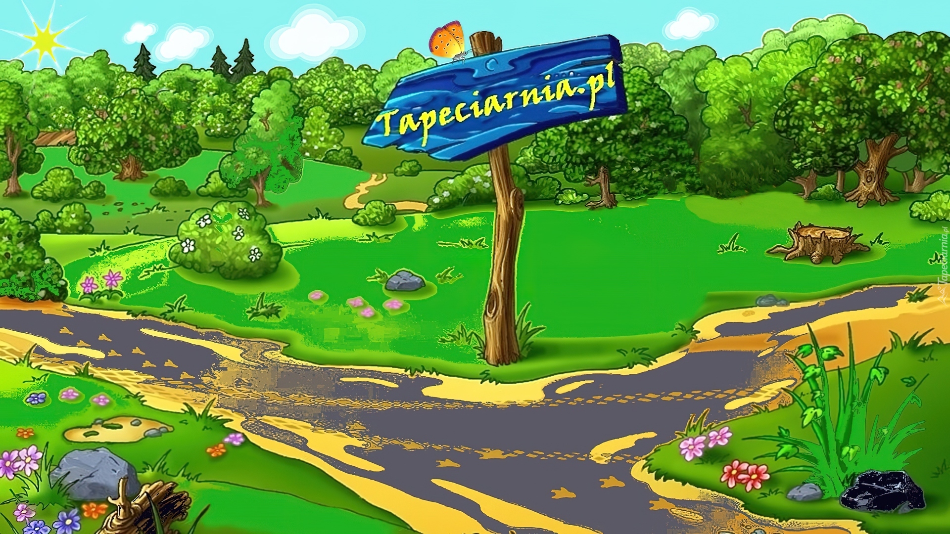 Edytor tapety: Grafika, Komputerowa, Droga, Las