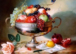 Edytor tapety: Srebrna, Patera, Owoce, Grafika