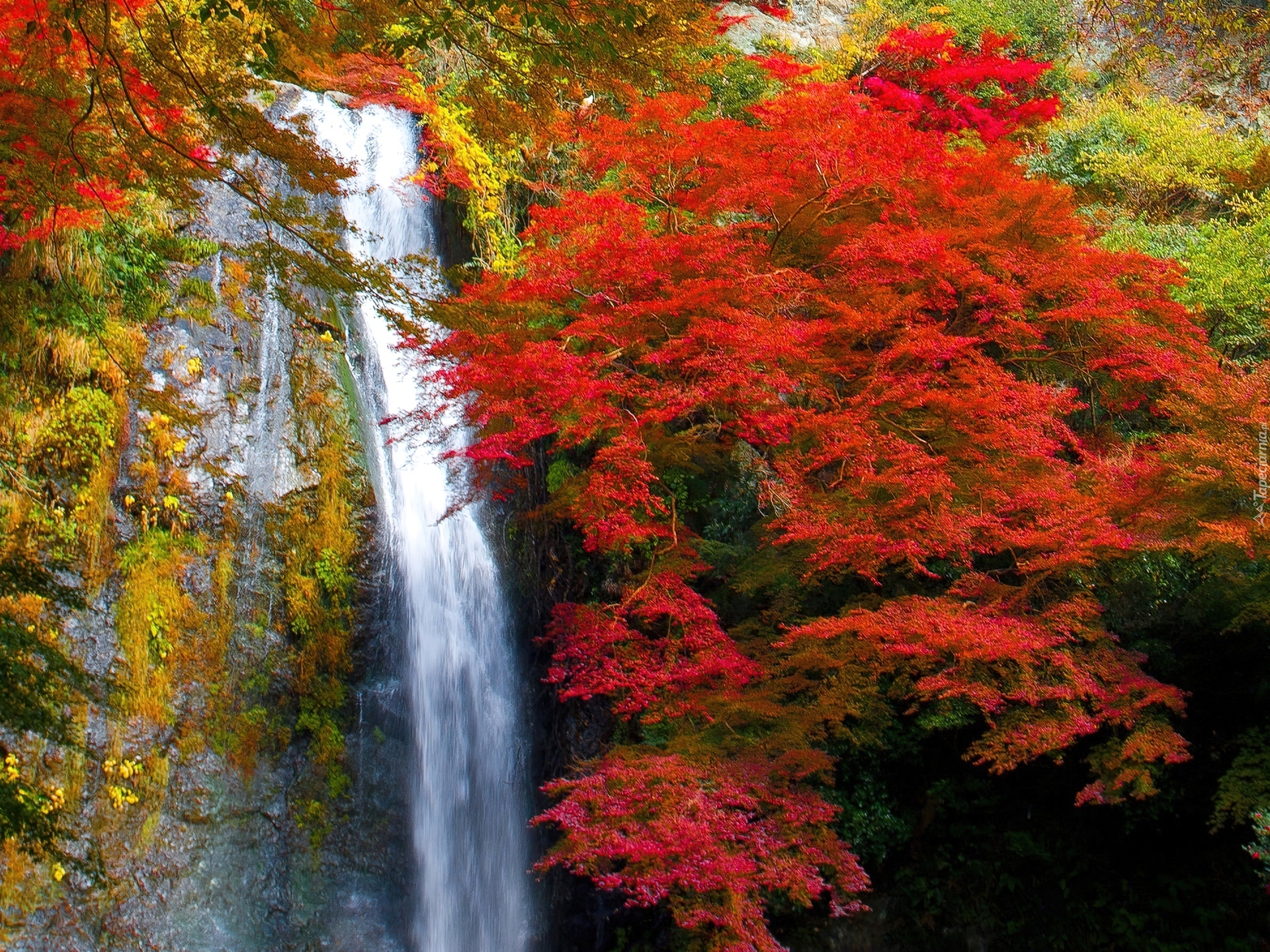 Edytor tapety: Wodospad, Jesienne, Drzewa
