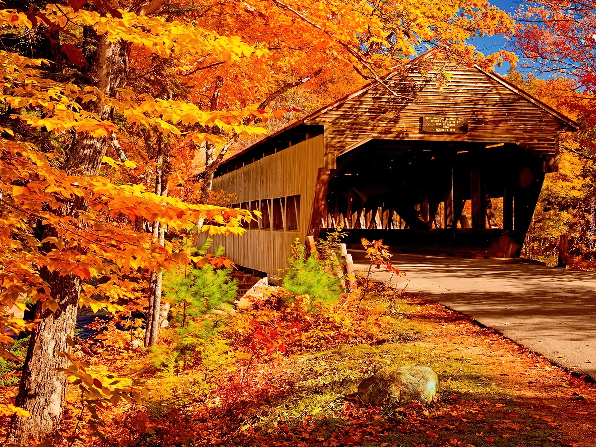 Edytor tapety: Drzewa, Liście, Jesień, Drewniany, Most