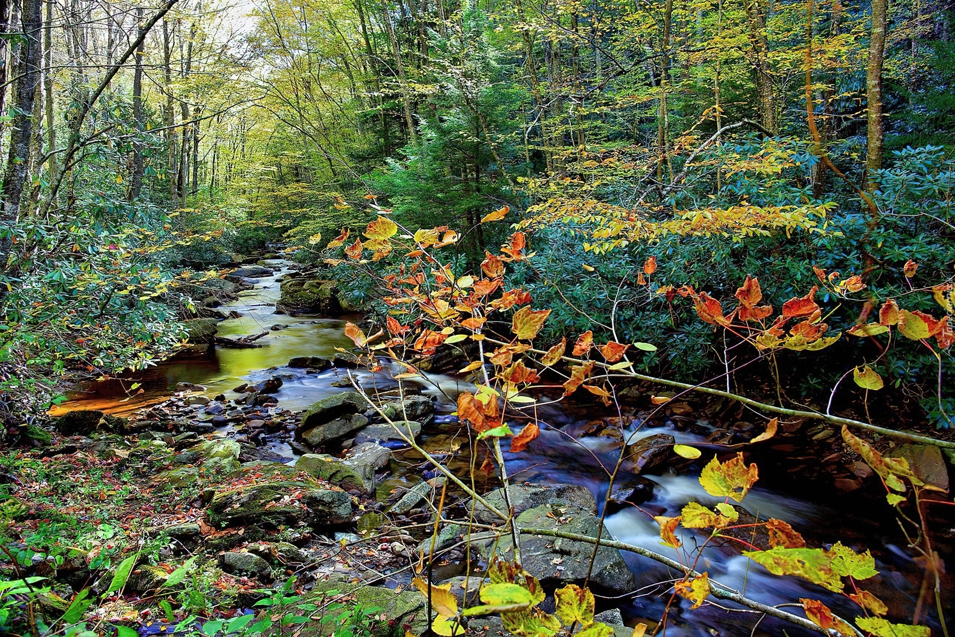 Edytor tapety: Rzeczka, Las, Jesień