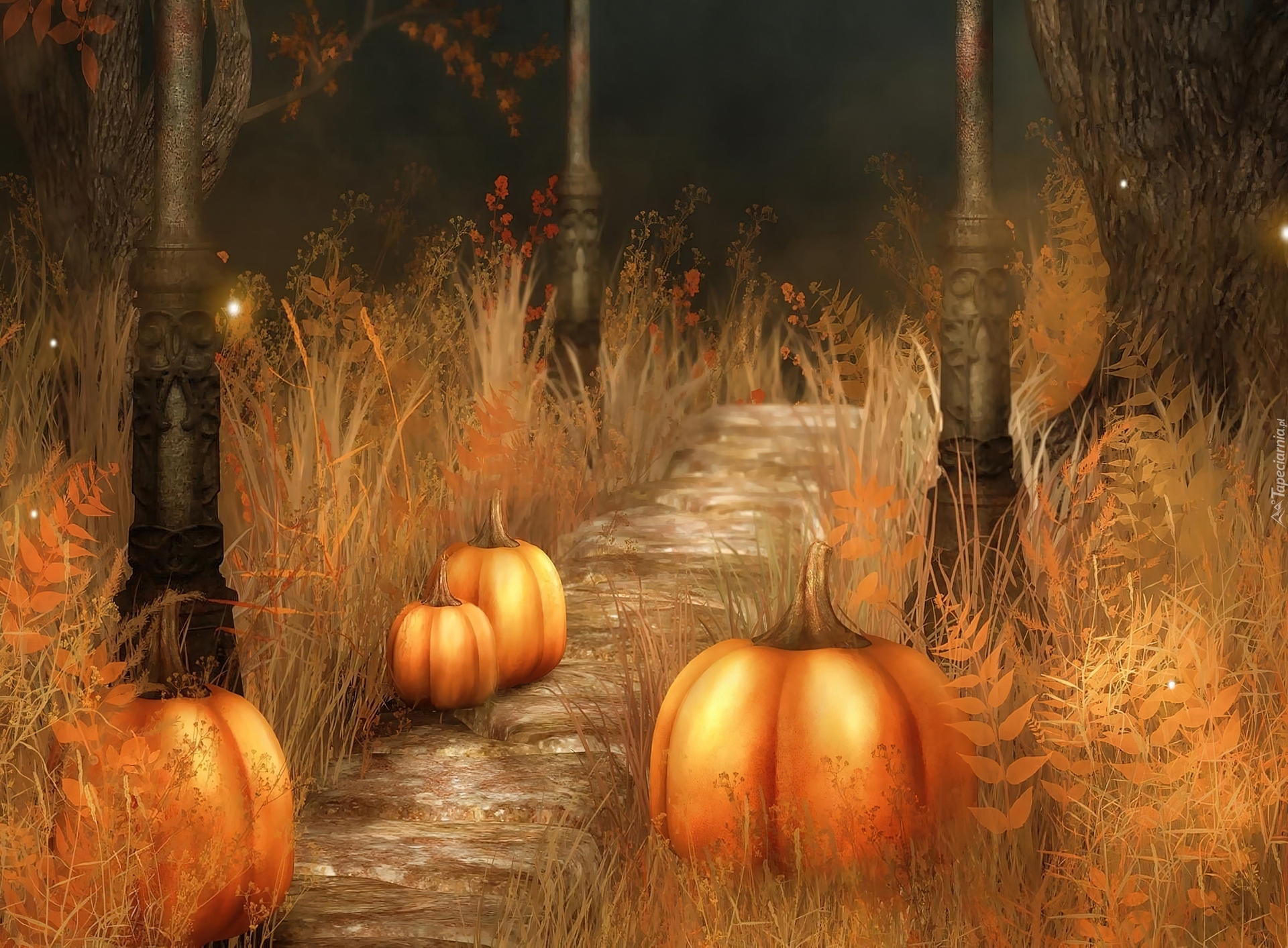 Edytor tapety: Halloween, Dynie, Droga, Grafika