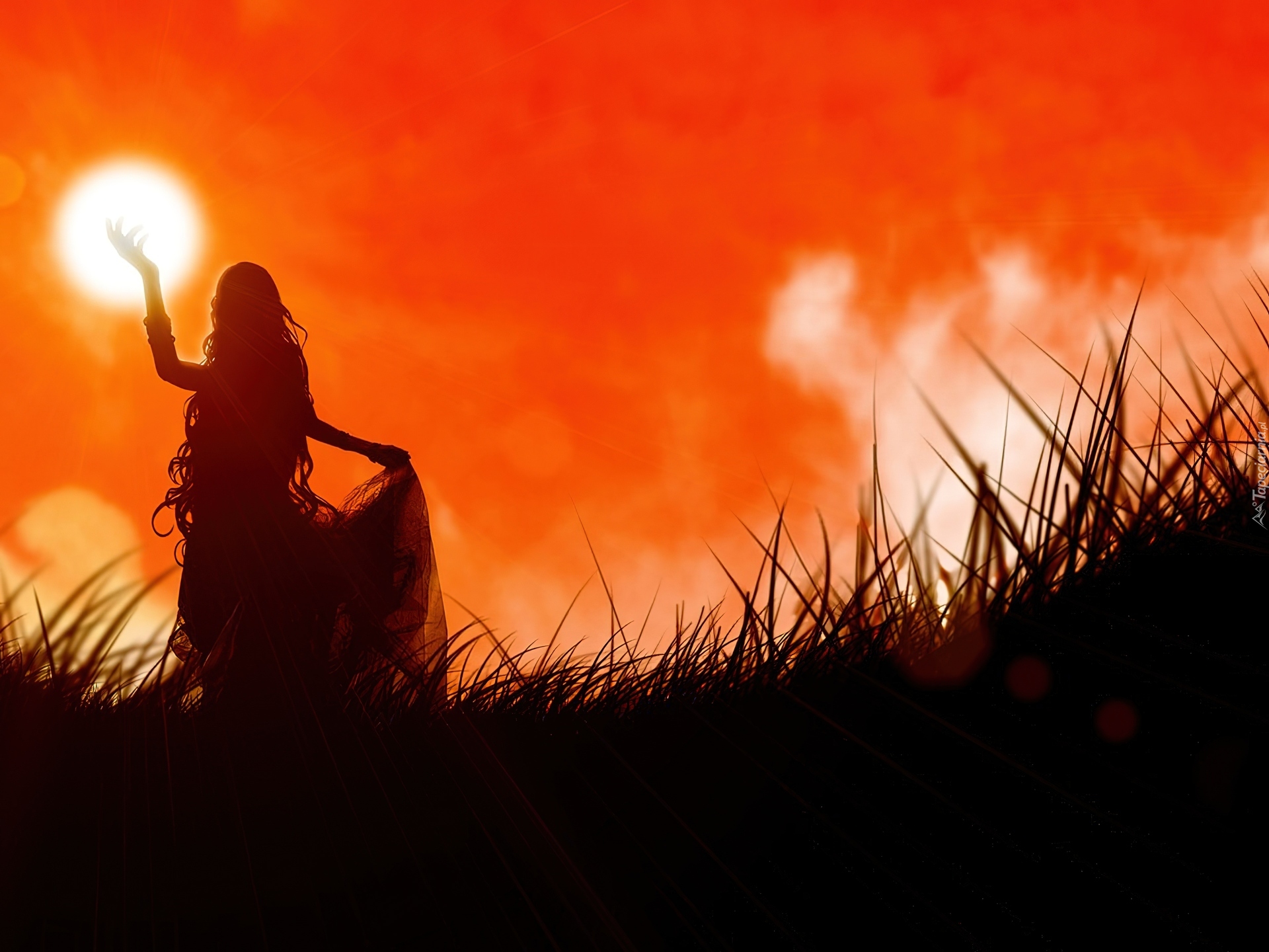 Edytor tapety: Kobieta, Sylwetka, Zachód Słońca