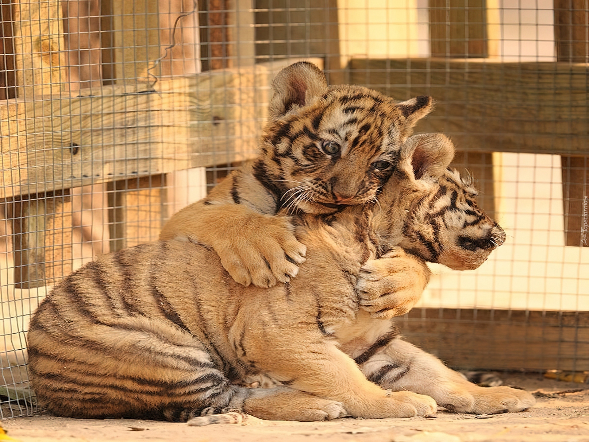 Edytor tapety: Dwa, Małe, Przytulone, Tygryski, Klatka
