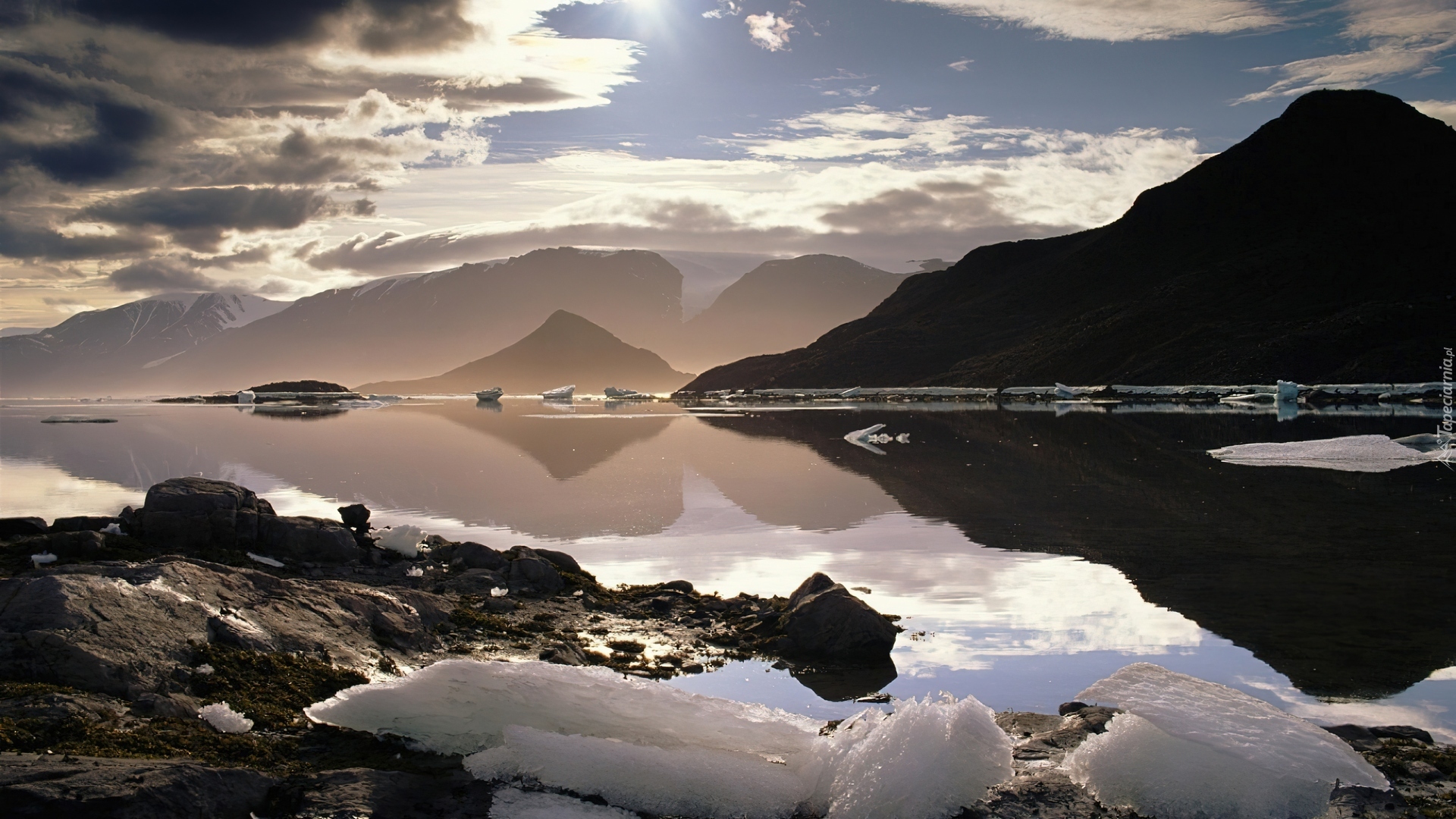 Edytor tapety: Góry, Jezioro, Zima, Odbicie