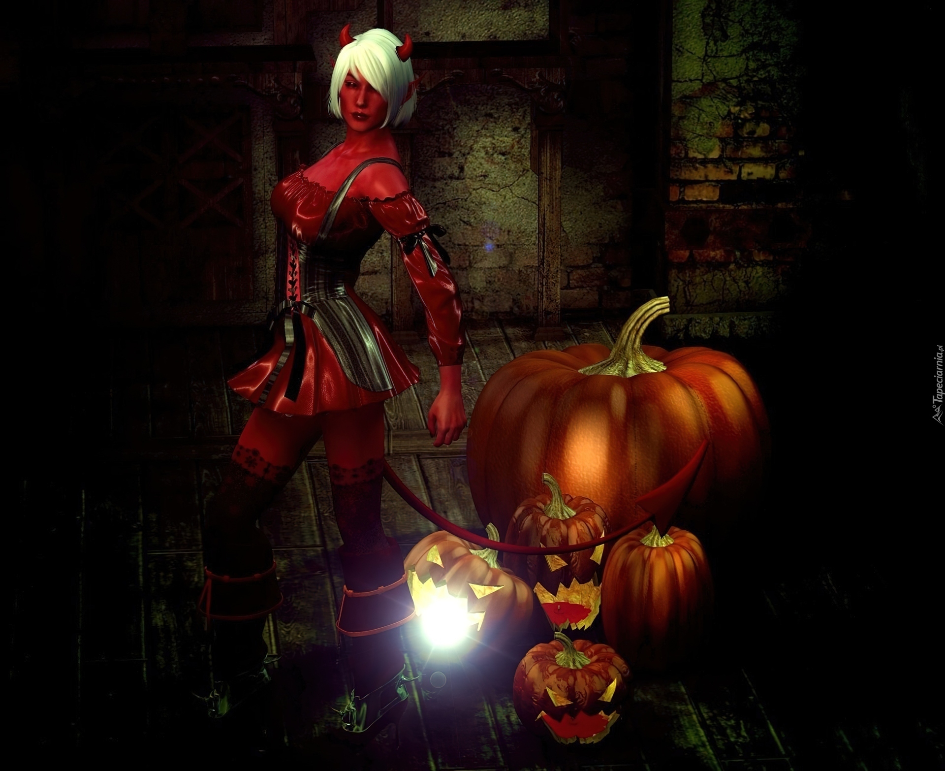 Edytor tapety: Grafika Komputerowa, Halloween, Dynie, Diablica
