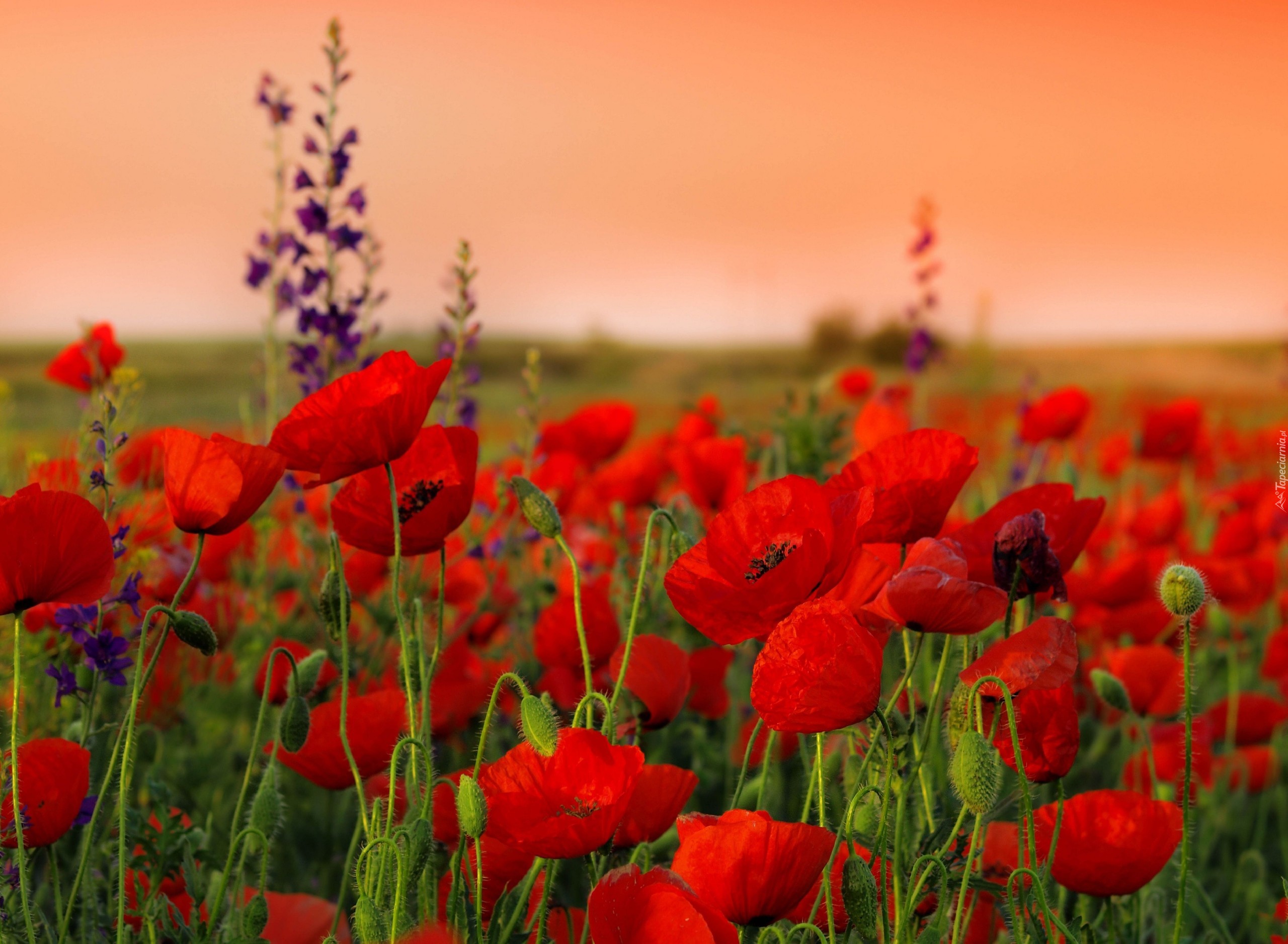 Edytor tapety: Pole, Czerwonych, Maków