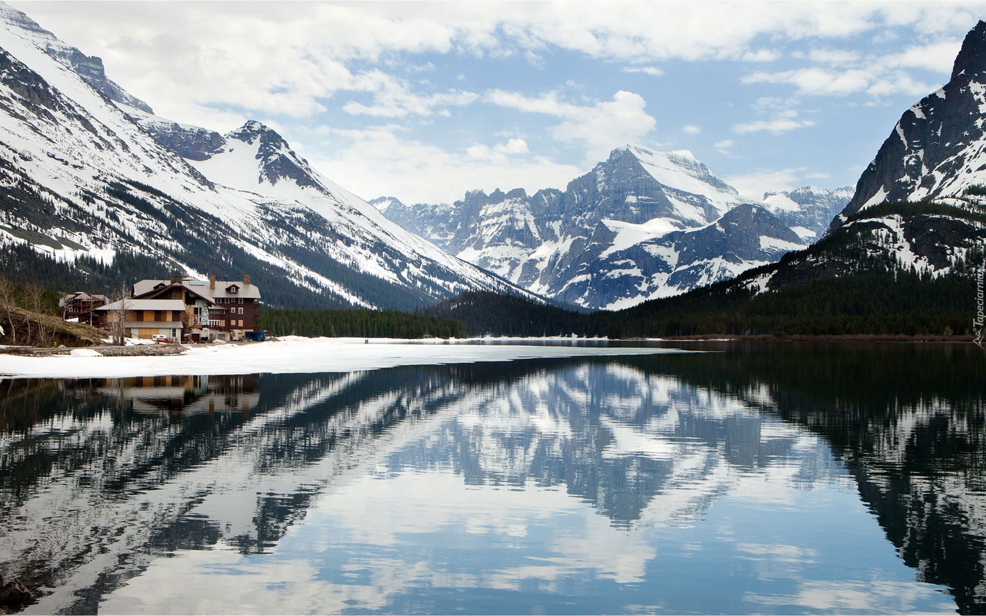 Edytor tapety: Ośnieżone, Szczyty, Gór, Jezioro